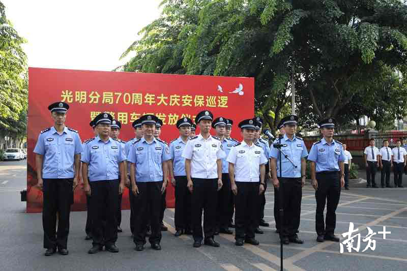 9月28日,在新中国成立70周年即将到来之际,深圳市公安局光明分局举行警用车辆发放仪式。光明分局班子成员出席仪式,分局机动训练大队、各派出所共约170名警力参加仪式。
