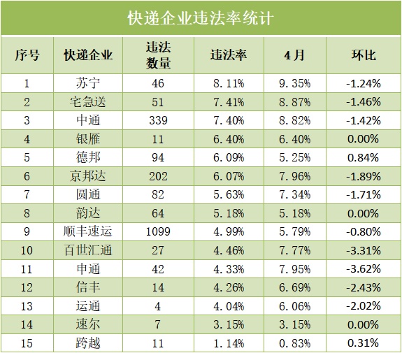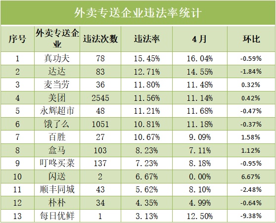 2020年5月,深圳交警共查获快递、外卖送餐行业交通违法21017宗, 环比下降2.26% 。其中,查处外卖送餐行业交通违法18924宗(专送骑手4188宗,众包骑手14736宗),快递行业交通违法2093宗。