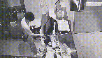 监控视频里,一个消瘦的年轻小伙,强行挤入一间上了U型锁的商铺大门,随后撬开收银机翻找现金。