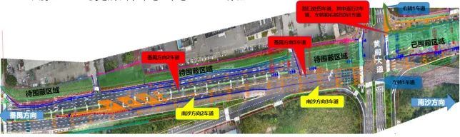 2、市南路黄阁大道以北(南沙往番禺方向)道路全围蔽施工,占道施工约600米,双向八车道变为单边双向六车道,其南沙往番禺方向早高峰(7:30—9:00)、晚高峰(16:00—19:00)期间拥堵较为严重。