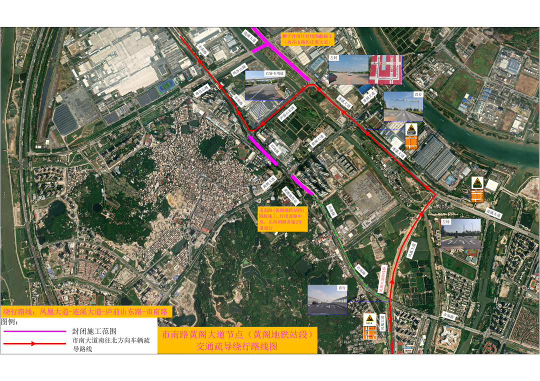 市南路快速化改造工程正在紧锣密鼓地实施中,随着道路升级改造的占道围蔽,以及车流量的不断增加,市南路局部路段出现了交通拥堵的情况。日前,为了缓解交通拥堵,南沙产业园管理局结合市南路周边已开放的道路,整理了最新的绕行路线。