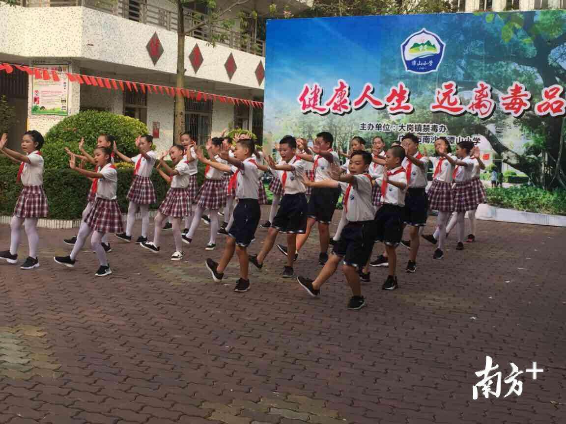 “你拍一,我拍一,毒品是个坏东西”。10月14日,为深化禁毒宣传教育进校园活动,更好地推进青少年毒品预防教育“6.27”工程,增强中小学生识毒、防毒、拒毒意识和能力,南沙区大岗镇禁毒办以“健康人生、绿色无毒”为主题,组织南沙区岭东职业技术学校、大岗镇潭山小学作为中小学推广示范学校,开展校园禁毒拍手操展演活动。两所学校近600名学生共跳禁毒拍手操,以一场生动别致的宣传活动,展示了中小学生“珍爱生命、拒绝毒品”的坚定决心和“健康生活、阳光前行”的精神风貌。