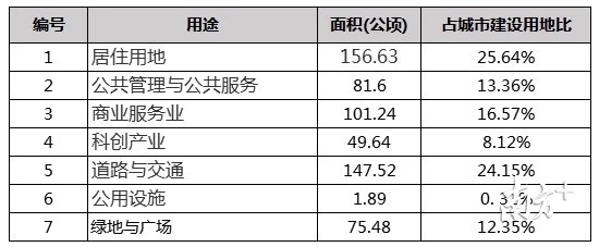 其中,居住用地156.63公顷,占城市建筑用地的25.64%;公共管理与公共服务设施用地81.6公顷,占城市建筑用地的13.36%;商业服务业设施用地101.24公顷,占城市建筑用地的16.57%。另外,配合明珠科学院的规划,还设置科创产业用地49.64公顷,占8.12%。