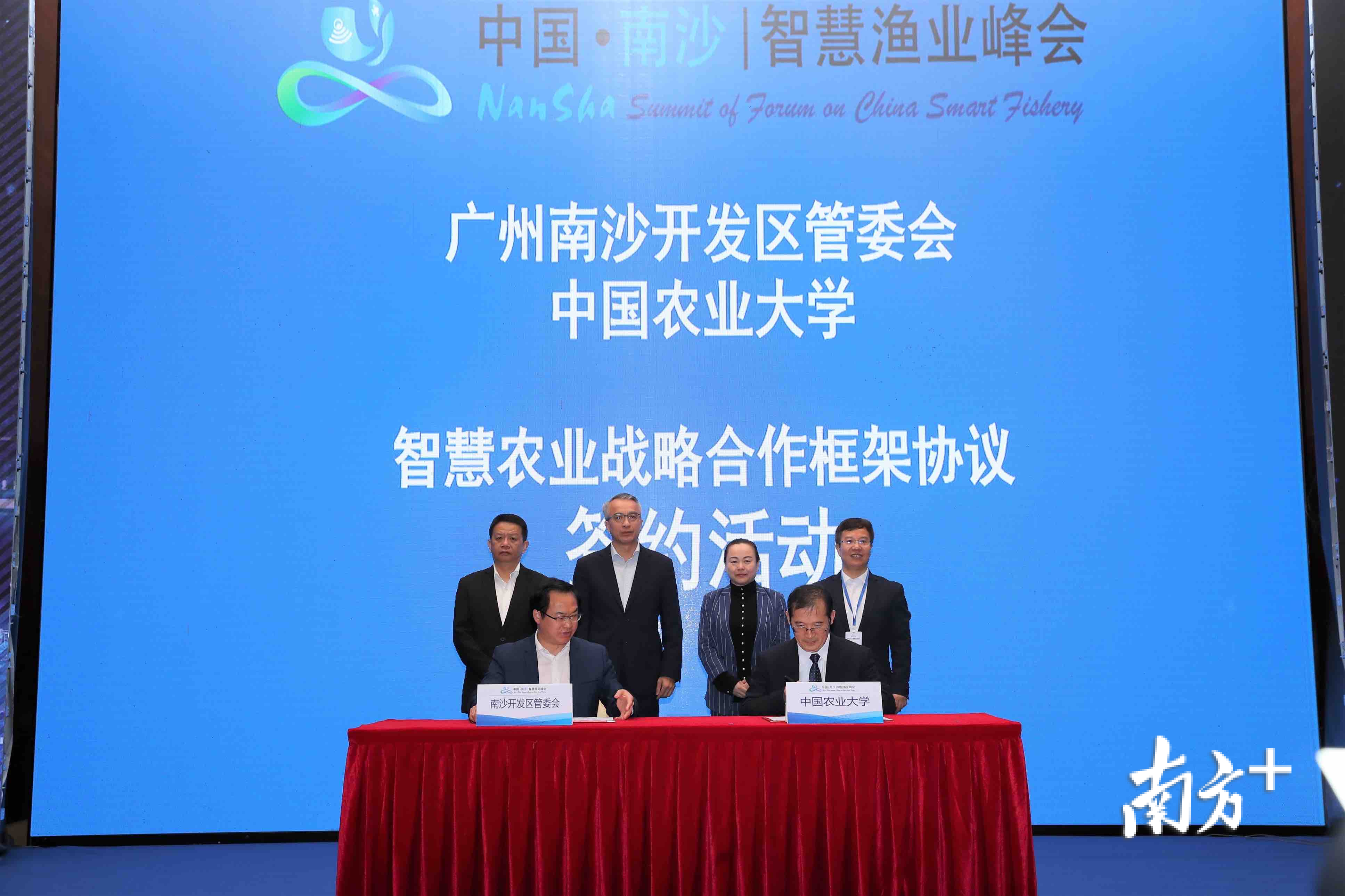 广州南沙现代农业产业集团公司分别与中国渔业物联网与大数据产业创新联盟、工业化水产养殖与装备产业技术创新战略联盟签订战略合作框架协议;与香港品质保证局、广州市品牌质量创新促进会签订合作协议。