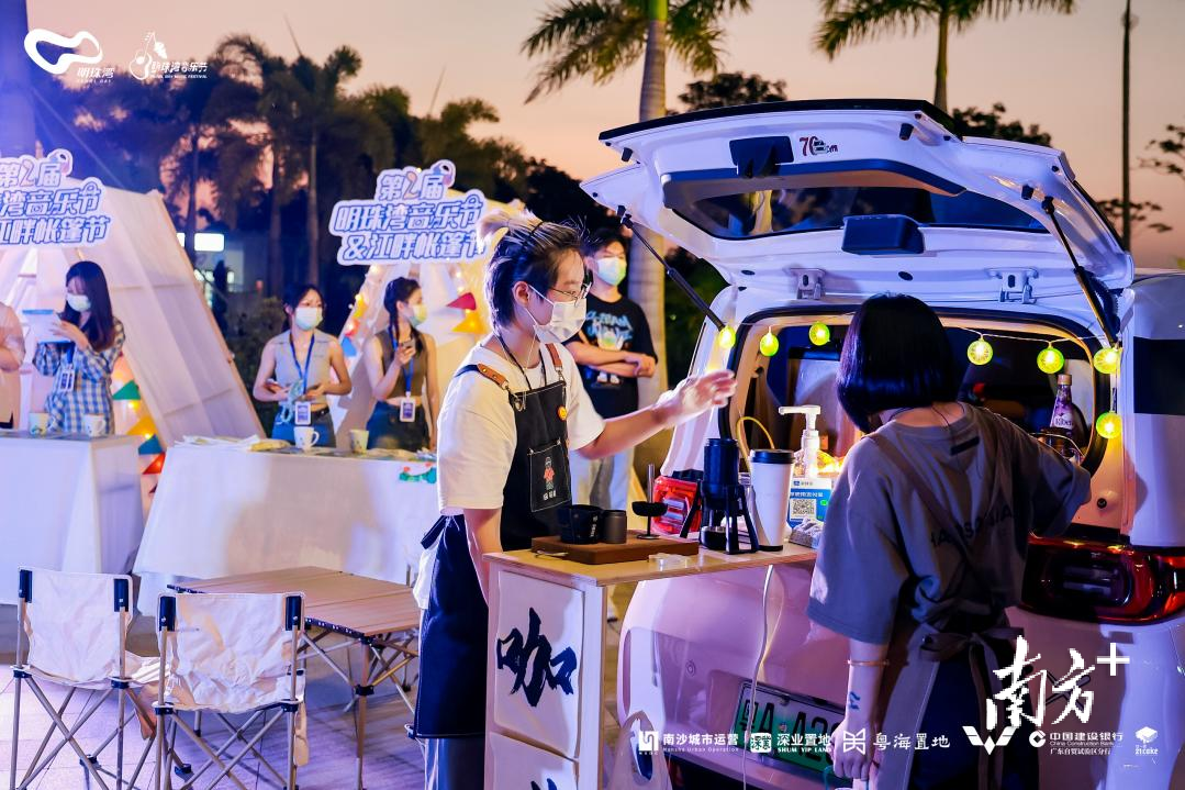 早在首场活动开始前,便已有不少市民提前到场,在主办方搭设好的帐篷、座椅等区域自由打卡,或流连于后备箱集市之中,尽情享受蕉门水道江畔的悠闲时光。
