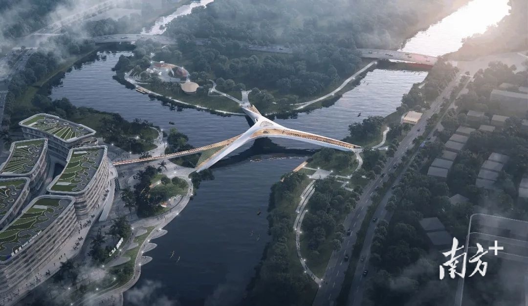 据了解,聚星桥是创享湾人行桥及周边功能完善工程中的一部分。该项目由中国工程院院士何镜堂院士领衔主持设计,建设内容包含五座人行桥及四处桥体周边景观建设,以打通蕉门河两侧步行路径,打造南沙门户为目标,延续南沙新区“城市客厅”(蕉门河景观带)的空间活力。