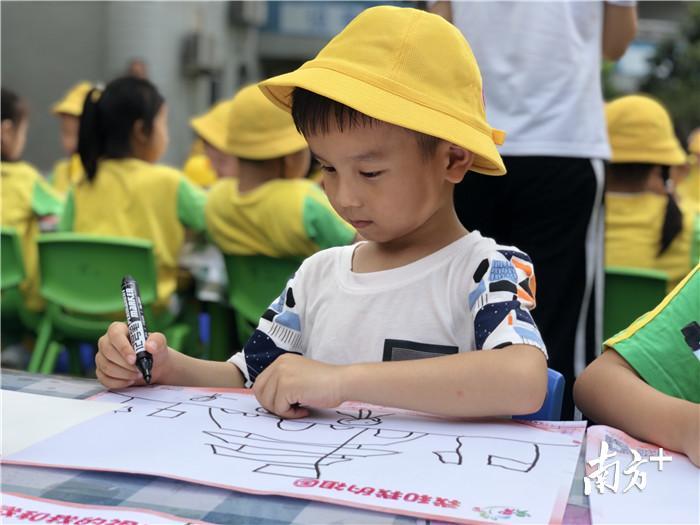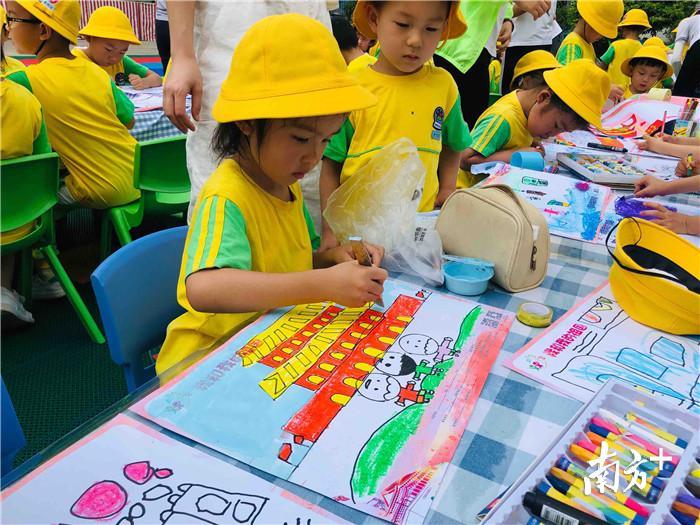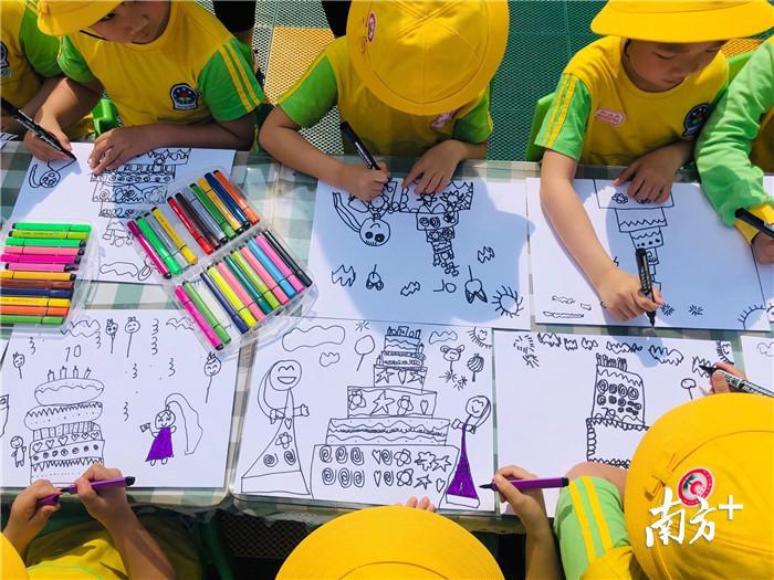 “我画的是爸爸妈妈和我,一起去天安门旅游”、“这是我制作的火箭还有五星红旗呢”、“这是生日蛋糕,上面一共有7根蜡烛,祝祖国70岁生日快乐”……参赛小朋友一边画画一边向笔者介绍自己的创作内容。