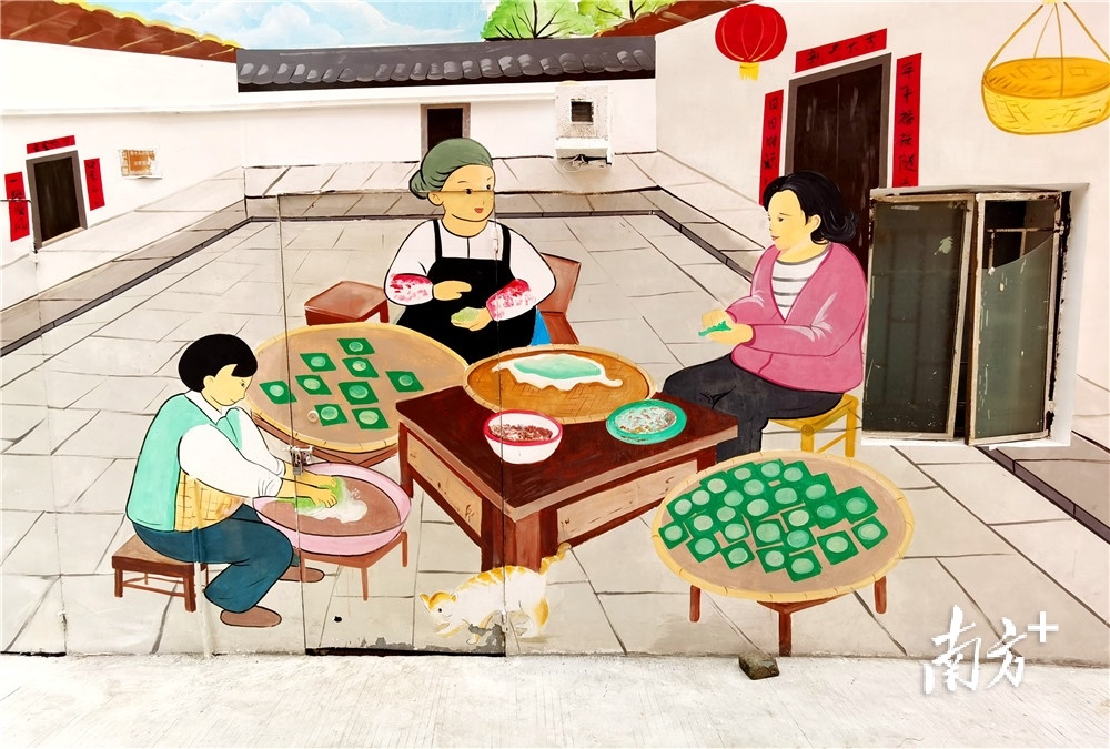 客家艾粄、农耕图、淳朴家风等浓郁的客家文化元素体现在墙壁上,这些色彩明艳、生活气息浓厚的主题墙绘提升了官仓社区乡村环境的“颜值”。官仓社区党总支部副书记张小芝介绍,本次开展的双报到活动主题是美化农村人居环境,把客家文化特色元素融入到墙绘当中,绘画面积达200多平方米,体现客家乡村韵味,为乡村增添“颜值”的同时,也希望通过活动引导大家主动参与农村人居环境整治,共塑文明乡风,共建美好家园。
