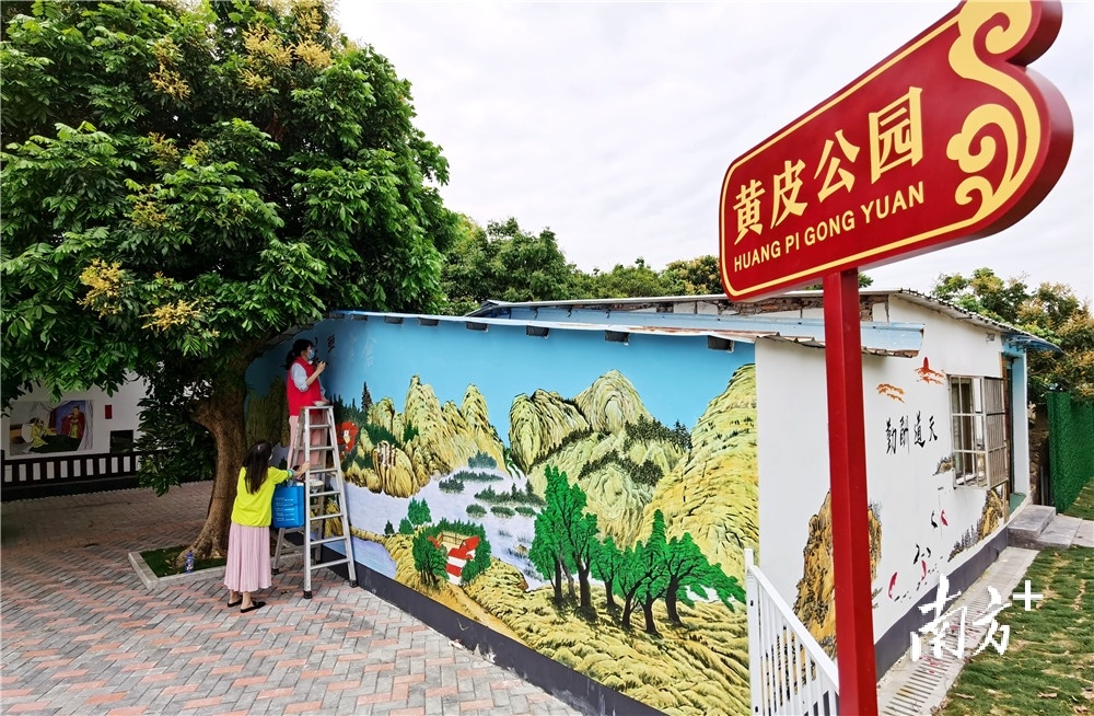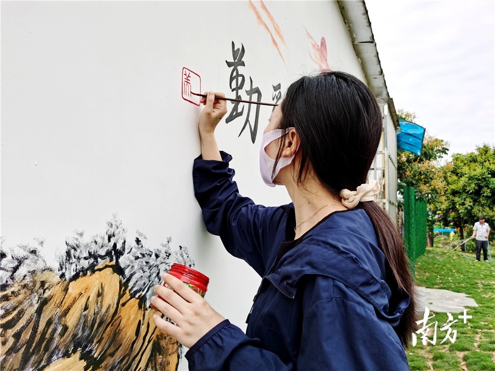 绘制客家文化墙绘,为美化人居环境出力。南方日报记者 孙俊杰 摄