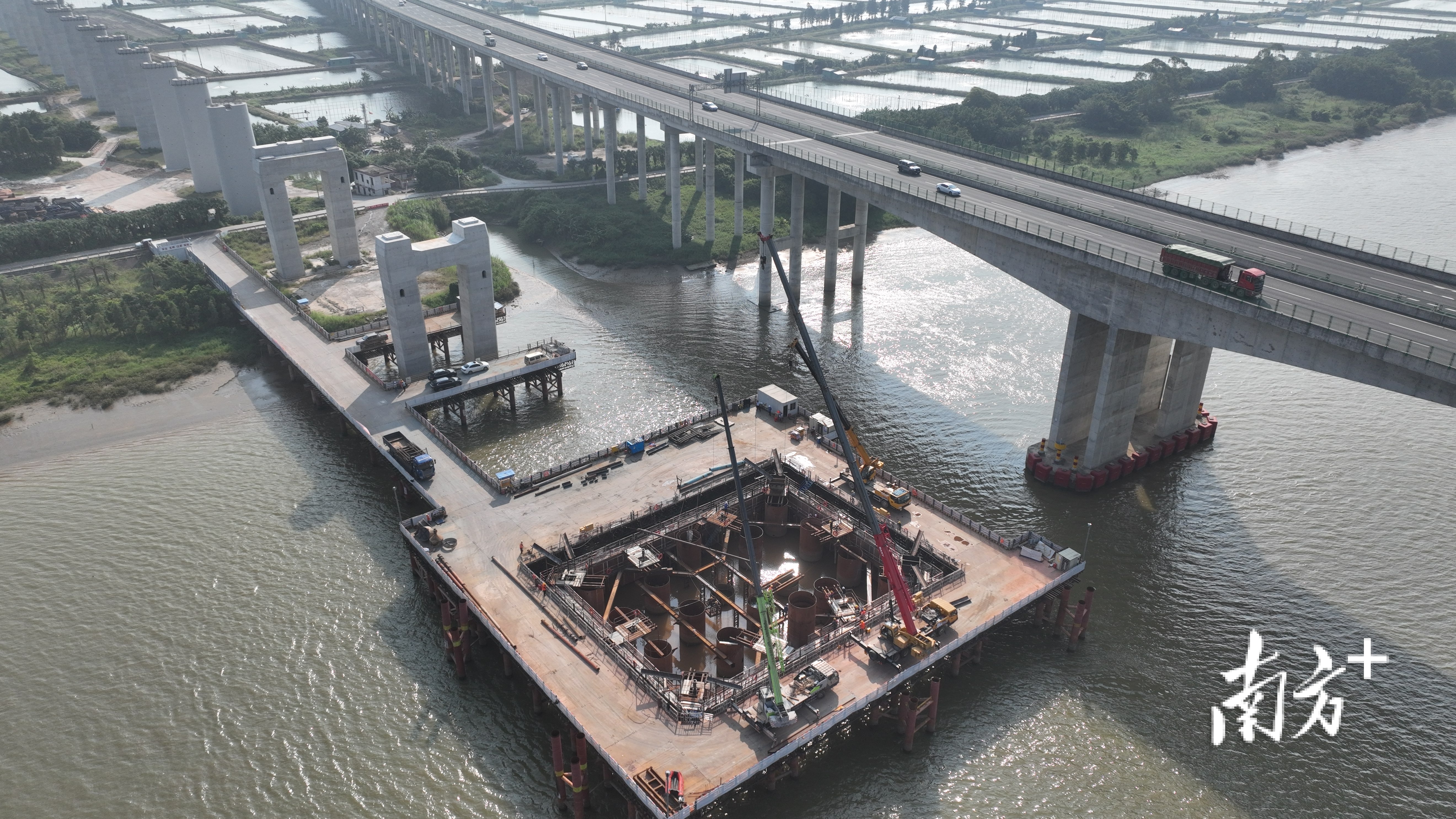 深江铁路正线全长116公里,桥隧占比达98%。由中铁二十五局承建的12标段,主要包括13.41公里正线、江门疏解线、江门动走线及存车场站前工程、455孔双线梁和92孔单线梁架梁任务以及全线铺轨等施工任务。其中,跨虎跳门水道斜拉桥主桥是12标段的控制性工程,该桥主跨达300米。