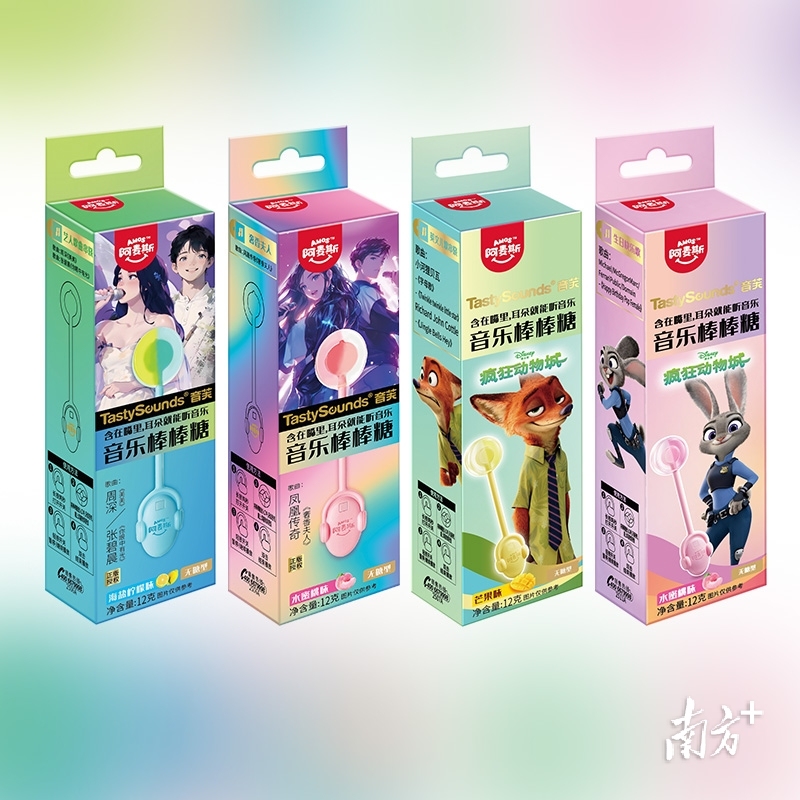 这款棒棒糖采用的是骨传导技术,把旋律植入棒棒糖。当你含在嘴里,音乐就能通过骨骼,传导至听觉神经。一放进嘴里就能听歌,甜蜜又带感。不同口味的糖果,配上不同的BGM,这款音乐棒棒糖已经成为表白、学英语、背古诗的好物,一年全网热销近10万支。