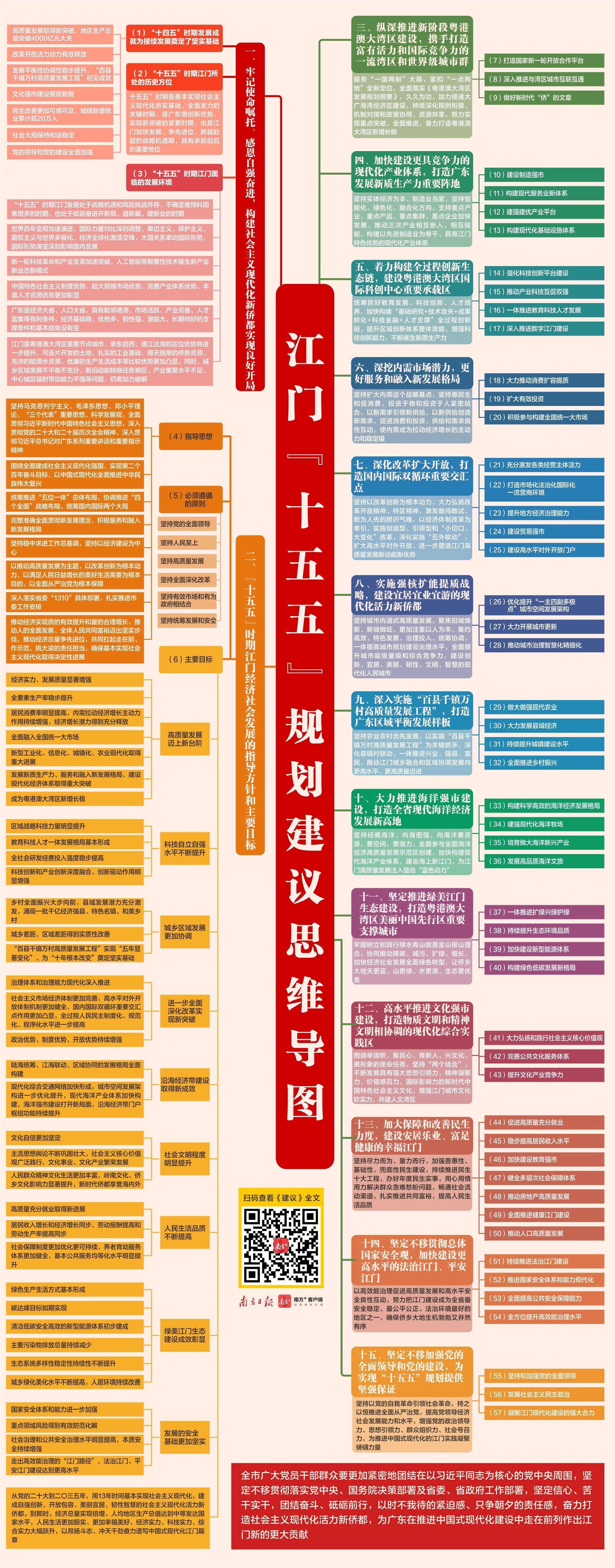 3月16日,中共江门市委关于制定江门市国民经济和社会发展第十五个五年规划的建议全文发布。南方+一图速览、思维导图带你读懂江门“十五五”规划建议。(看全文)