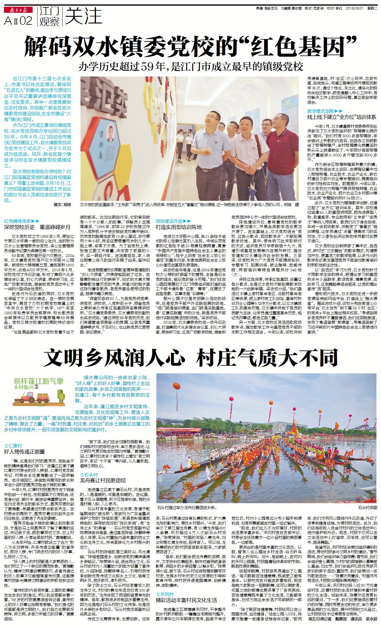 “每年,我们都会把龙舟赛的视频、图片、文字资料收集起来,制作成画册或者录影带,供回乡的乡亲回看,以解乡愁。”陈荣娣介绍,接下来,石头村还将梳理和撰写好村史,发挥乡村中历史文化资源的引导和教育作用,向村民传递爱国精神、创新精神、进取精神。