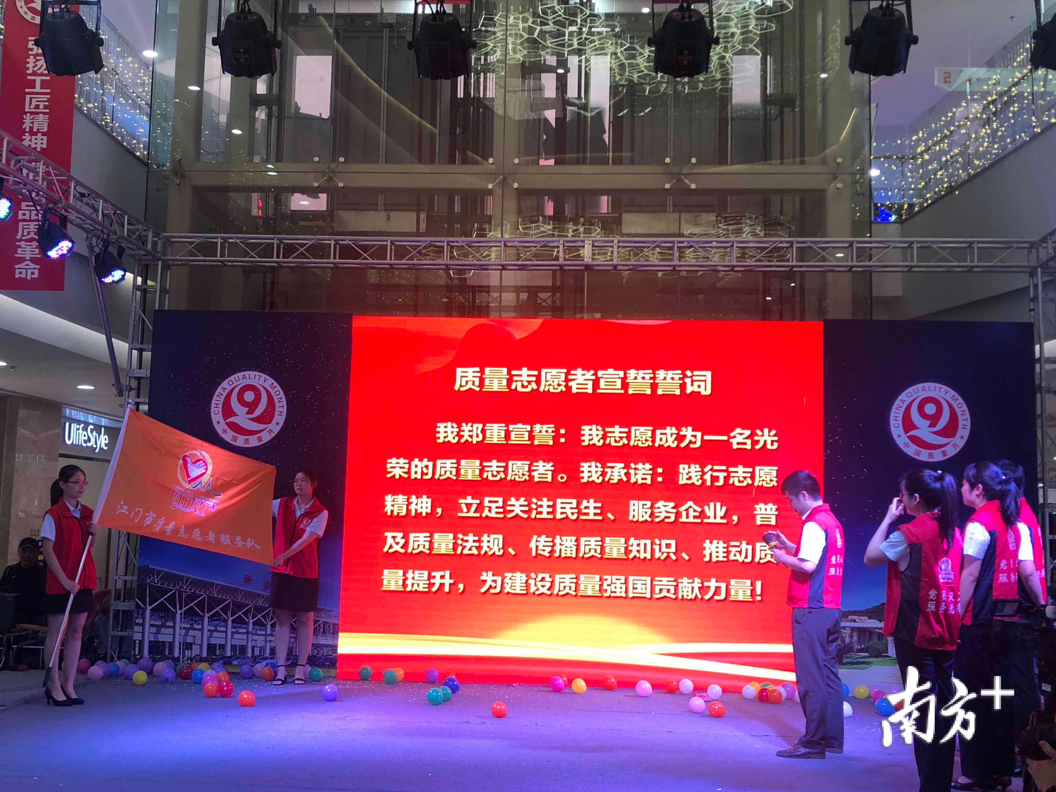 活动现场举行了质量志愿者成立仪式,江门市团市委副书记林沛华为江门市质量志愿者服务队授旗。质量志愿服务队将立足关注民生、服务企业,普及质量法规、传播质量知识,推动质量提升。