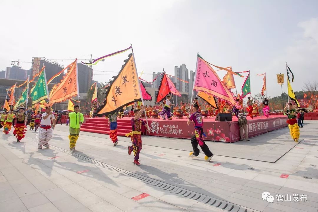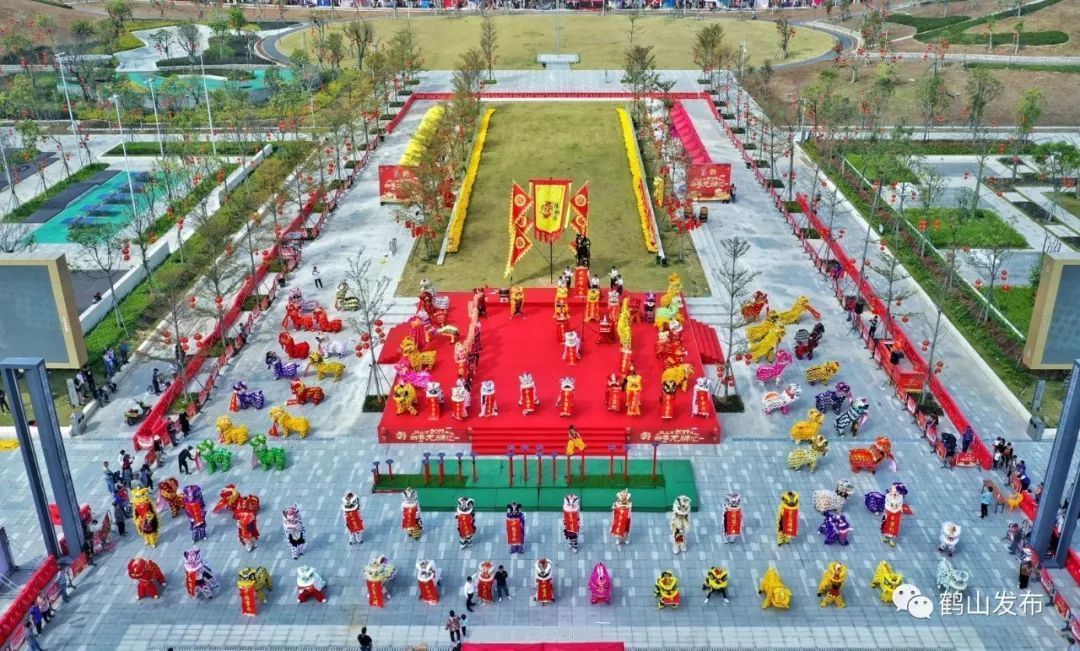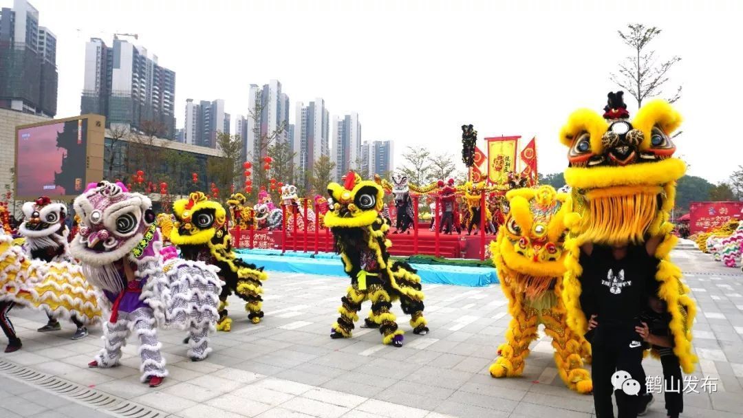 鹤山市2019年新春龙狮汇活动集中于年初一下午举办,包括鹤山狮艺表演和竹蓢金龙巡游两大部分,共五个篇章表演内容。