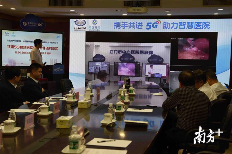 5月8日上午,由江门移动提供5G网络支持,江门市中心医院肝胆外科专家与远在30公里以外的鹤山市人民医院普外医生进行远程手术会诊,完成了江门首场5G远程指导手术。