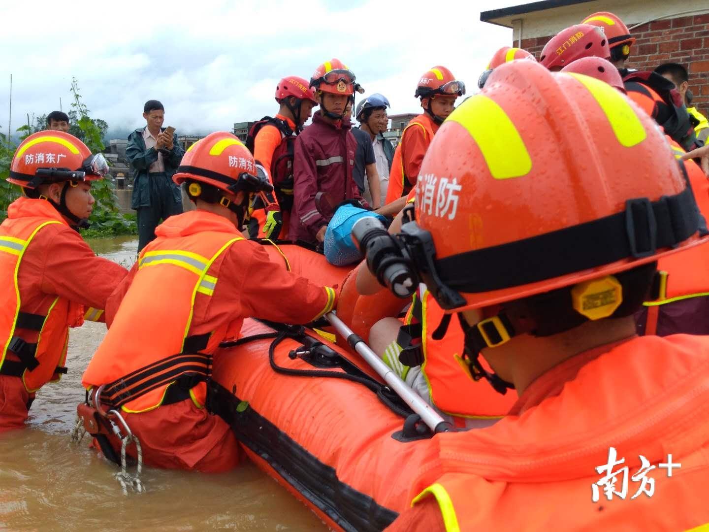 29日12时05分许,江门市消防救援支队接到报警称:因连日暴雨,河水倒灌,开平市月山镇大岗南安村被淹,多名群众被困,水位最深处达3米,情况十分危急,请求救援。接到报警后,市消防支队立即调派开平消防出动3辆消防车15名指战员赶赴现场进行救援。