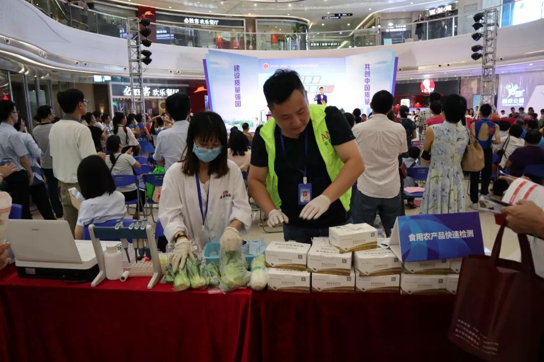 活动现场还开展了质量知识有奖问答,并提供珠宝玉石免费检验、眼镜和血压计免费检定、食用农产品快速检测等便民服务,受到市民广泛欢迎。不少市民举家齐齐来为江门质量打call。