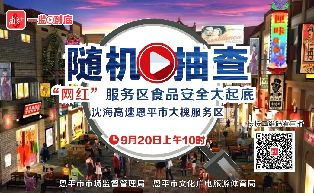 9月20日10时,恩平市市场监督管理局与恩平市文化广电旅游体育局将走进大槐服务区、大槐农贸市场进行食品安全检查。当天,一监到底查食安直播将首次走进高速服务区,随机抽取1间餐厅与1间超市进行检查。南方+将对此次检查全程直播。