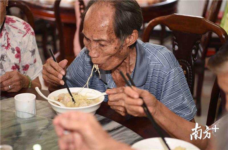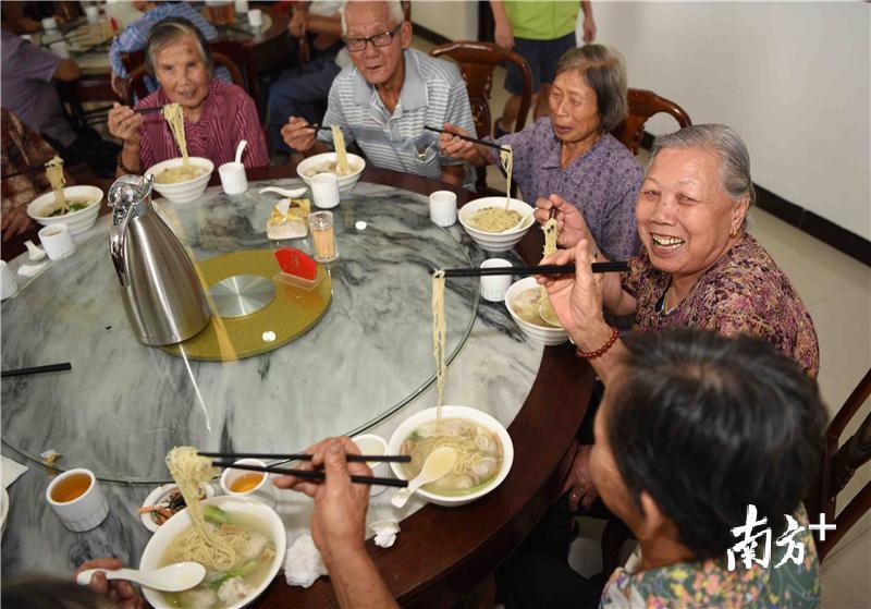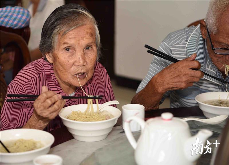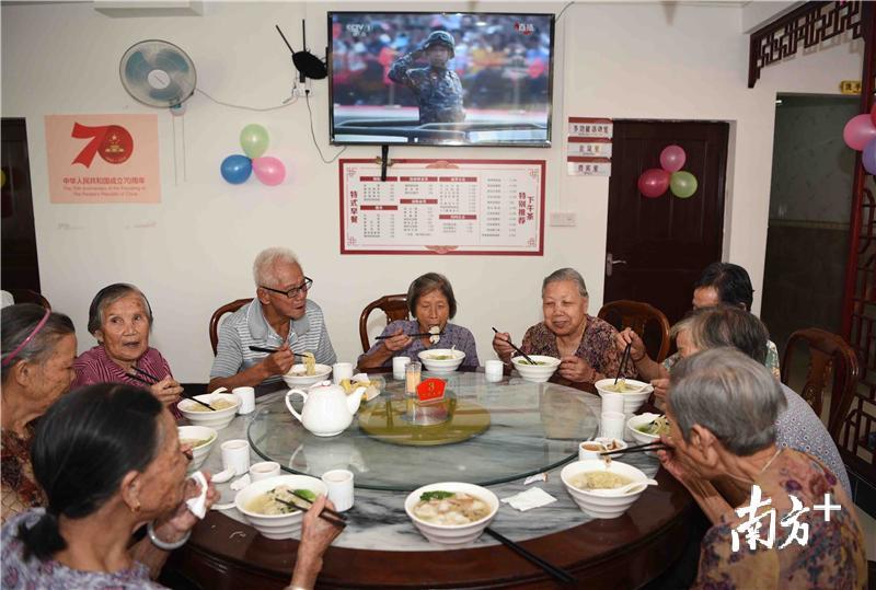 过生日吃一碗面,是中国人延续至今的牵挂和味道。10月1日上午,江门同善社工中心的义工们为抗战老兵、社区长者和残疾人士送上长寿面、爱心面,陪同他们观看阅兵仪式。40多位长者中,有不少与新中国同龄。