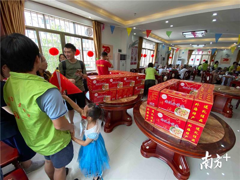 “外海面又称‘长寿面’,是江门本地的特色面食。为老人们送上一碗长寿面,祝愿他们健康长寿!”江门市尚佳全蛋面传承人陈泽林表示,这次他带来了65箱外海面送给江海区前进村的老人们。