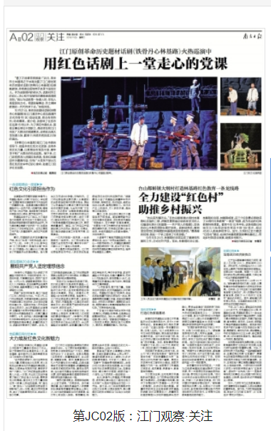 此次《铁骨丹心林基路》开展进基层、进校园巡演只是江门通过红色文化引导广大党员干部担当实干的一个开始。接下来,江门还将挖掘更多的红色文化资源,以更多接地气、群众喜闻乐见的形式展现江门红色文化的新魅力。