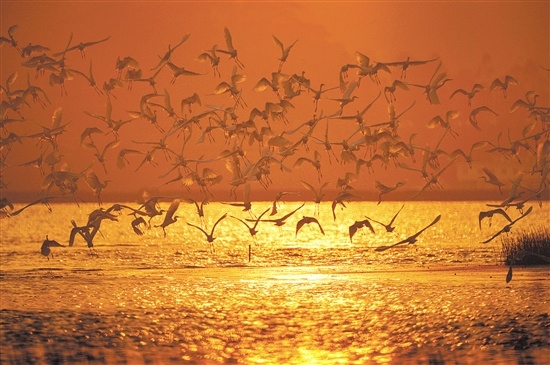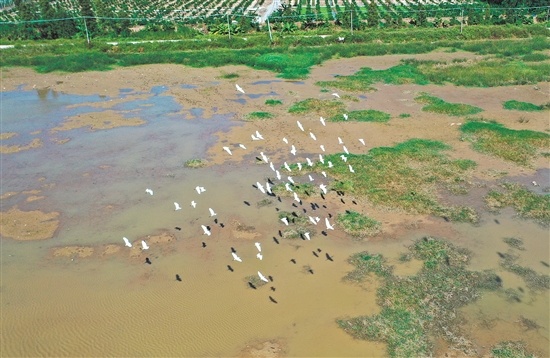 记者近日在潮连沙滩乐园附近见到,大群鹭鸟在西江边浅滩觅食、栖息,时聚时散,时分时合,配以辽阔的天空和乡间田园作背景,像一幅美丽的图画,吸引了不少市民驻足观赏。
