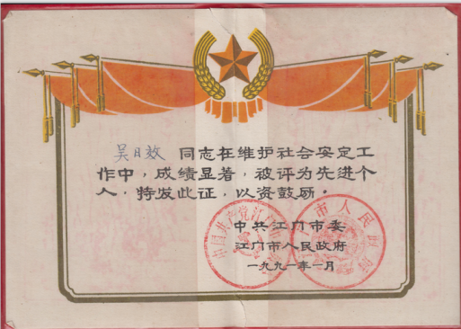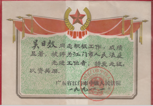 1990年,法庭新建了办公楼。一位华侨在台山办厂,惹了官司,经吴日效审理判决,双方当事人都很满意。华侨自此很信任吴日效,还把自己的经历告诉国外的亲友。吴日效的美名传开了,华侨们主动捐款修建了法庭大楼,并赠送一辆摩托车。