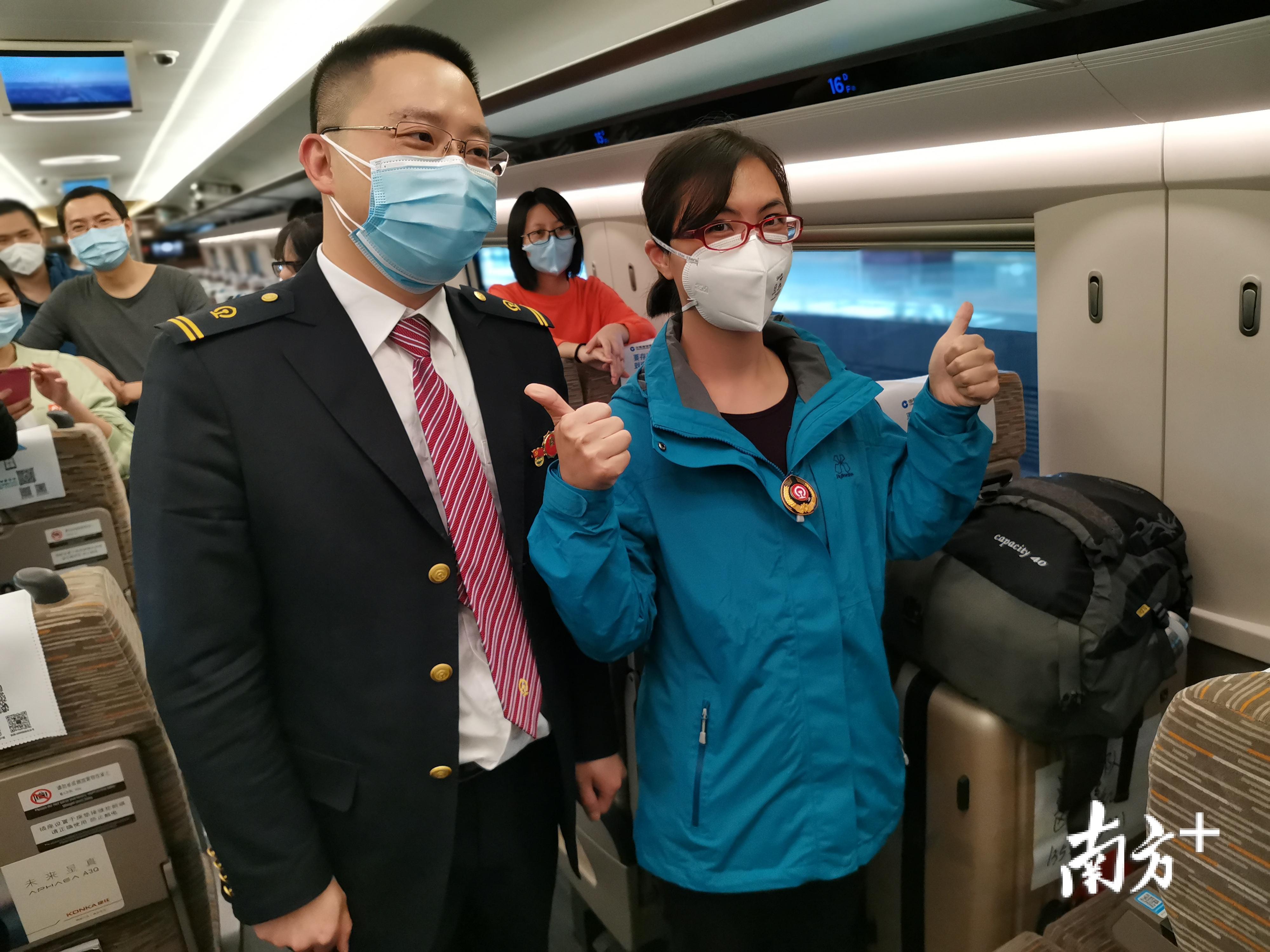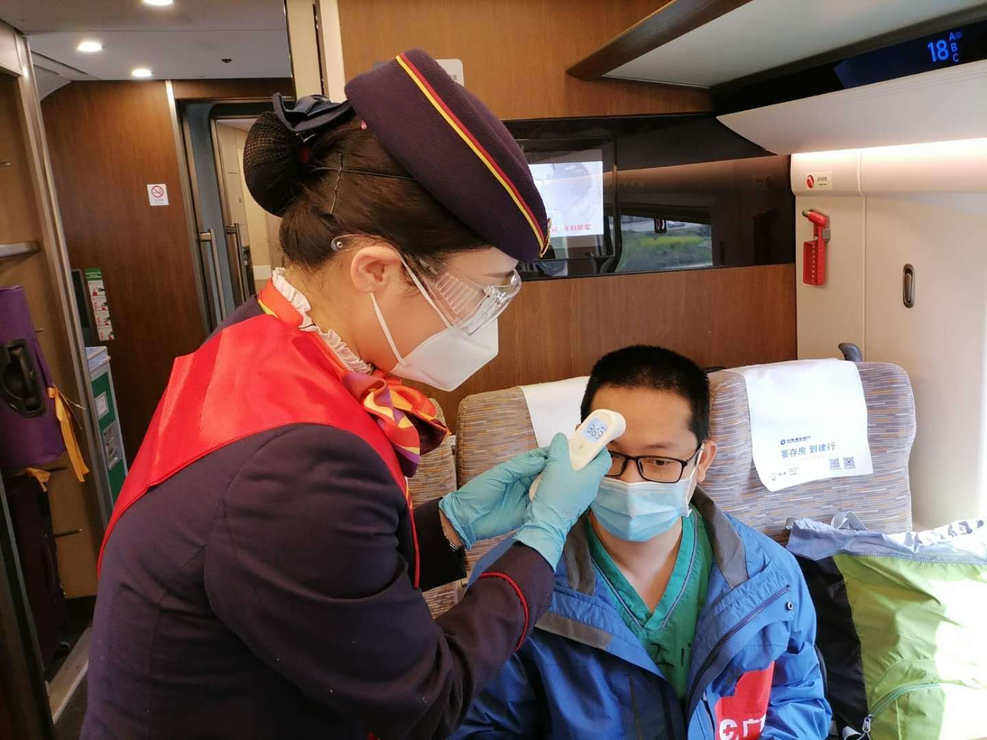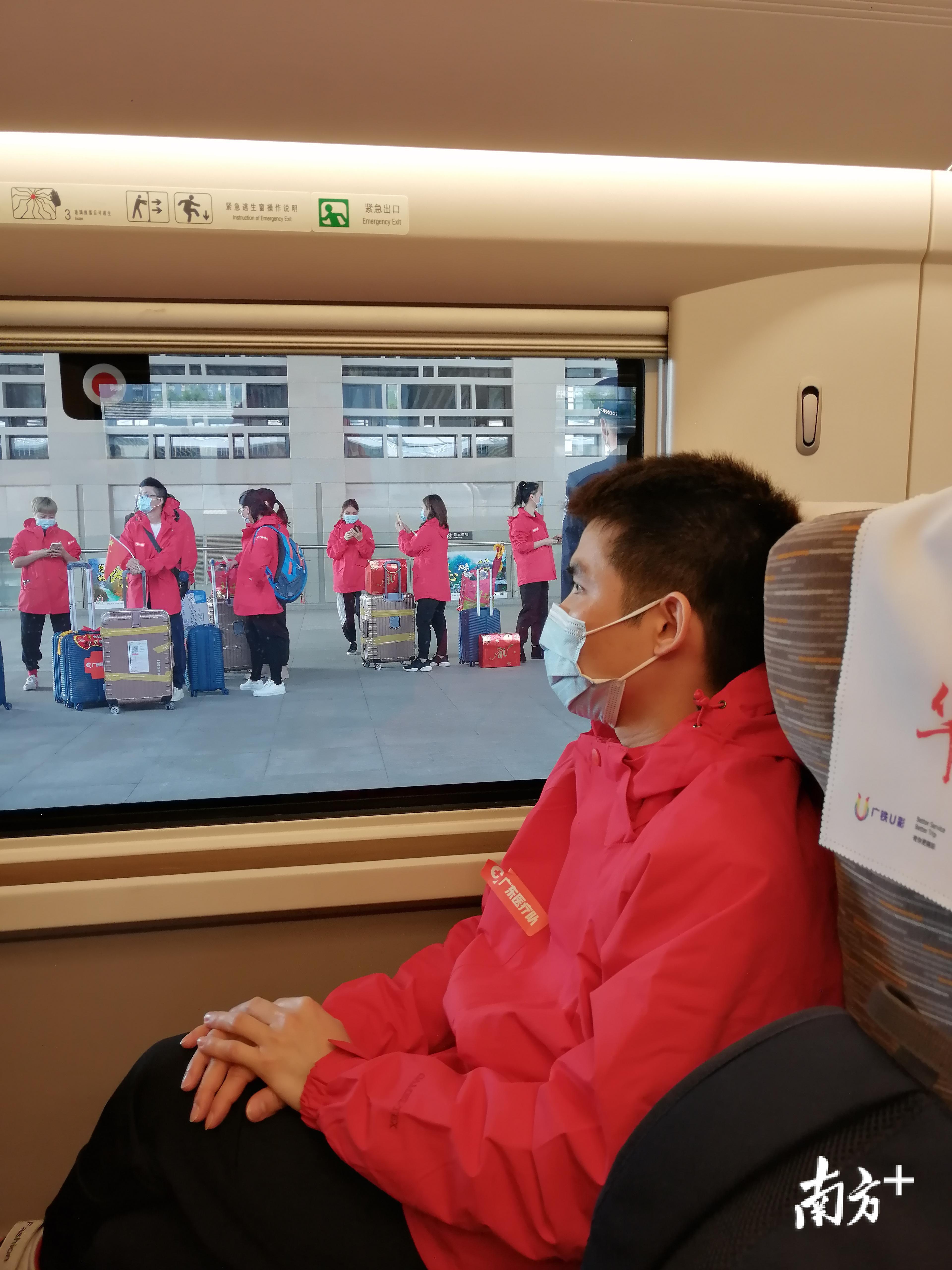 #江门市首批支援湖北医疗队#高铁乘务员全程监测队员们的健康情况。