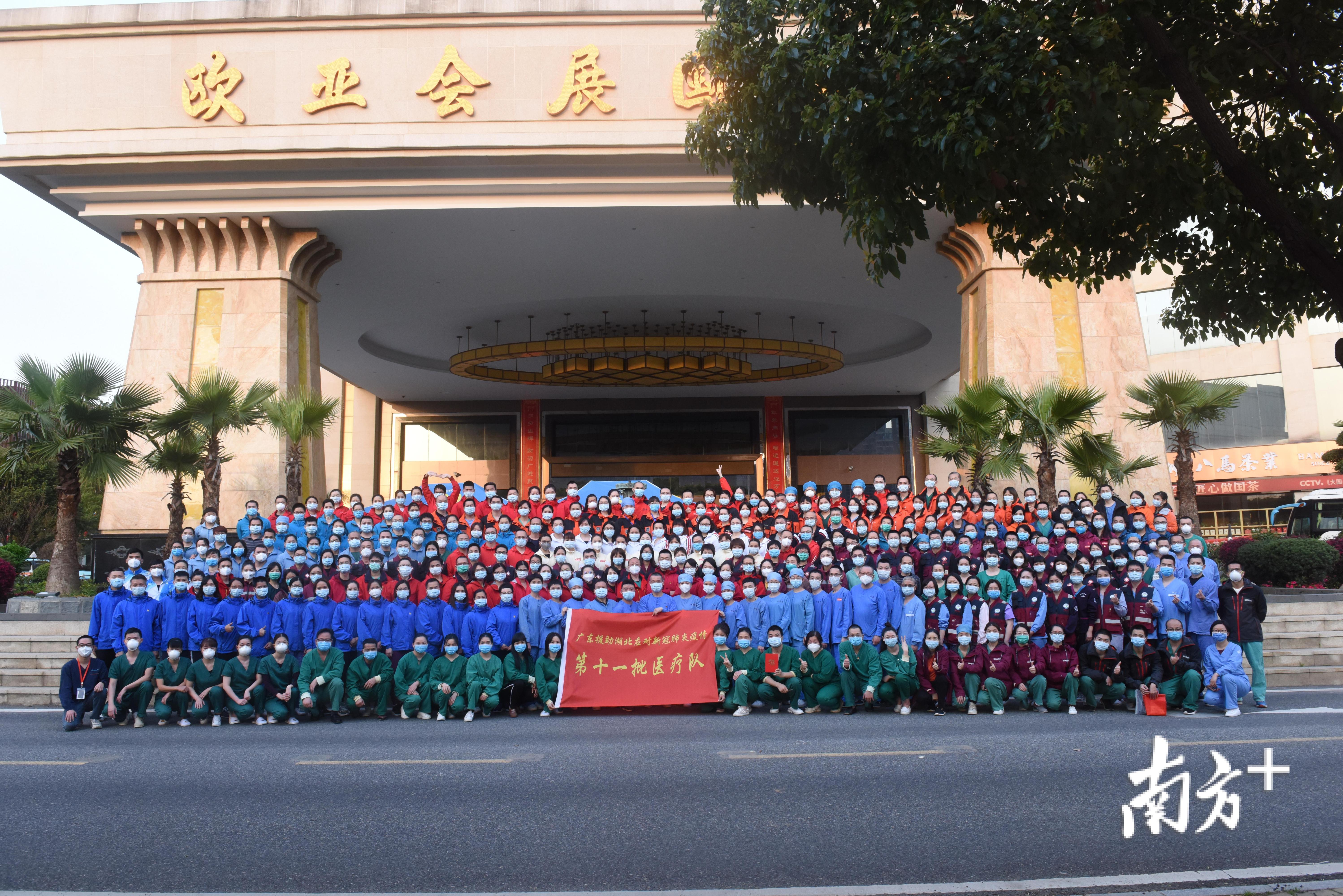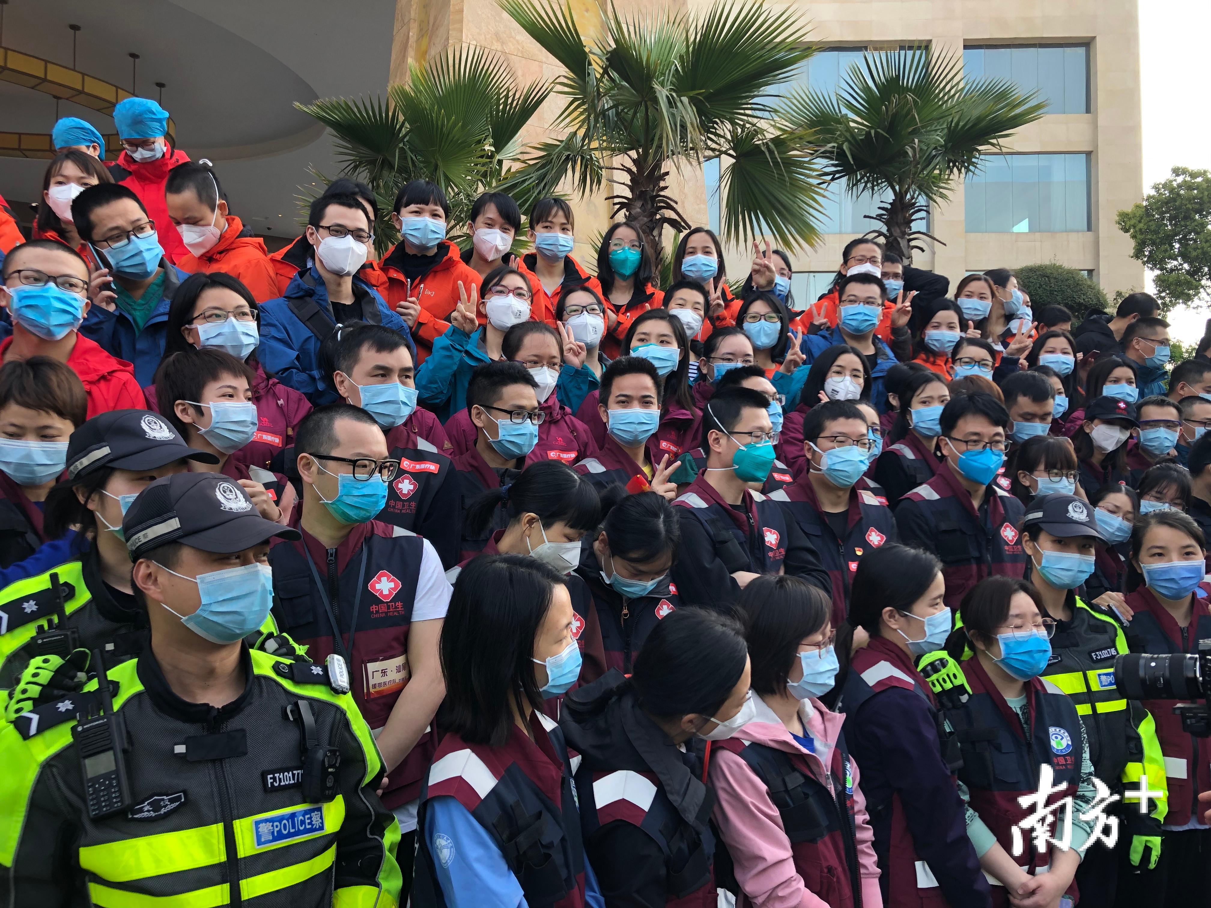 #江门首批支援湖北医疗队#3月20日早上8点,江门首批支援湖北医疗队在酒店门前集中,与广东省第十一批医疗队其他队伍合影留念后,启程回家。