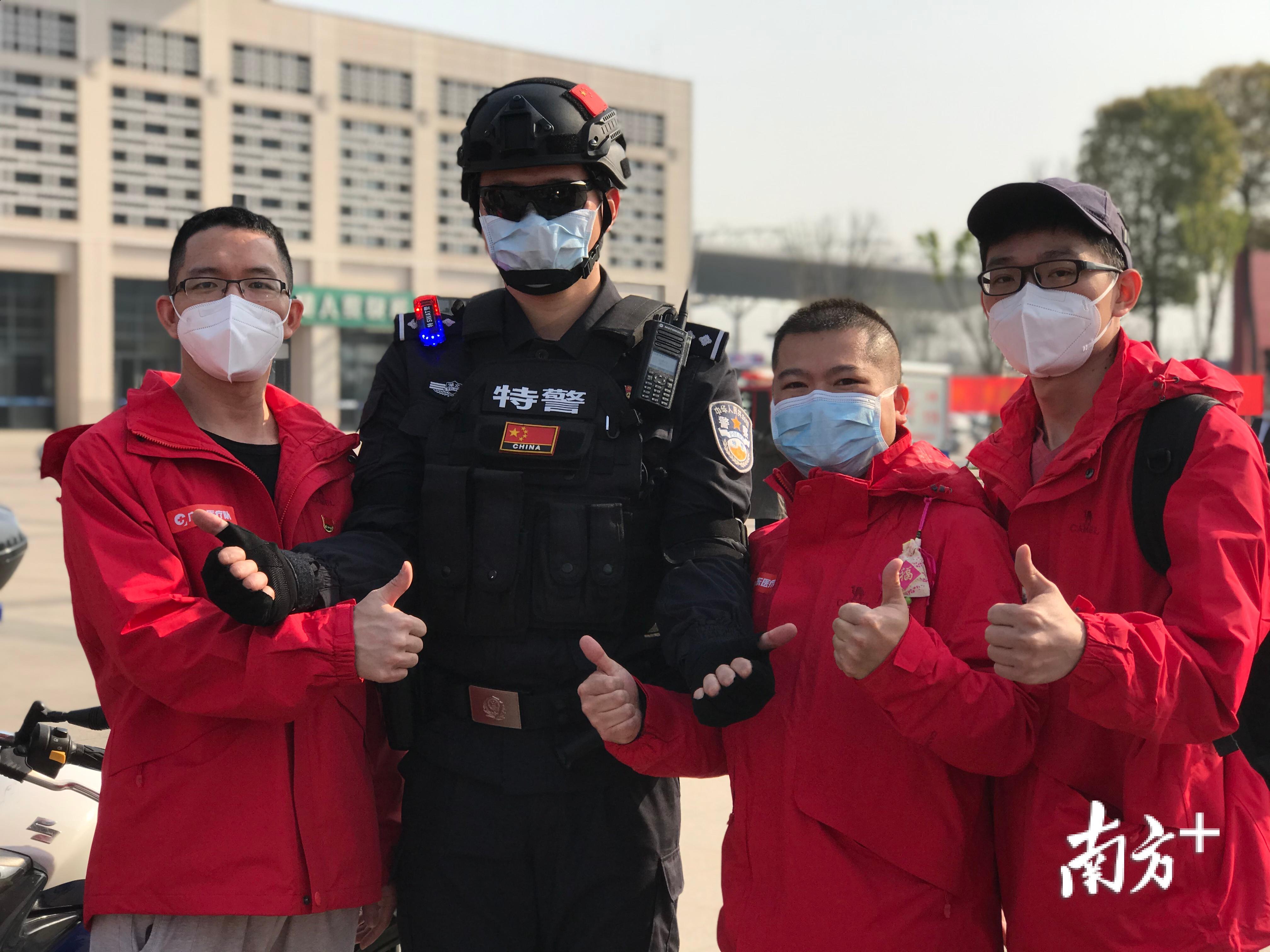 #江门市第二批支援湖北医疗队#队员与荆州特警合影留念。