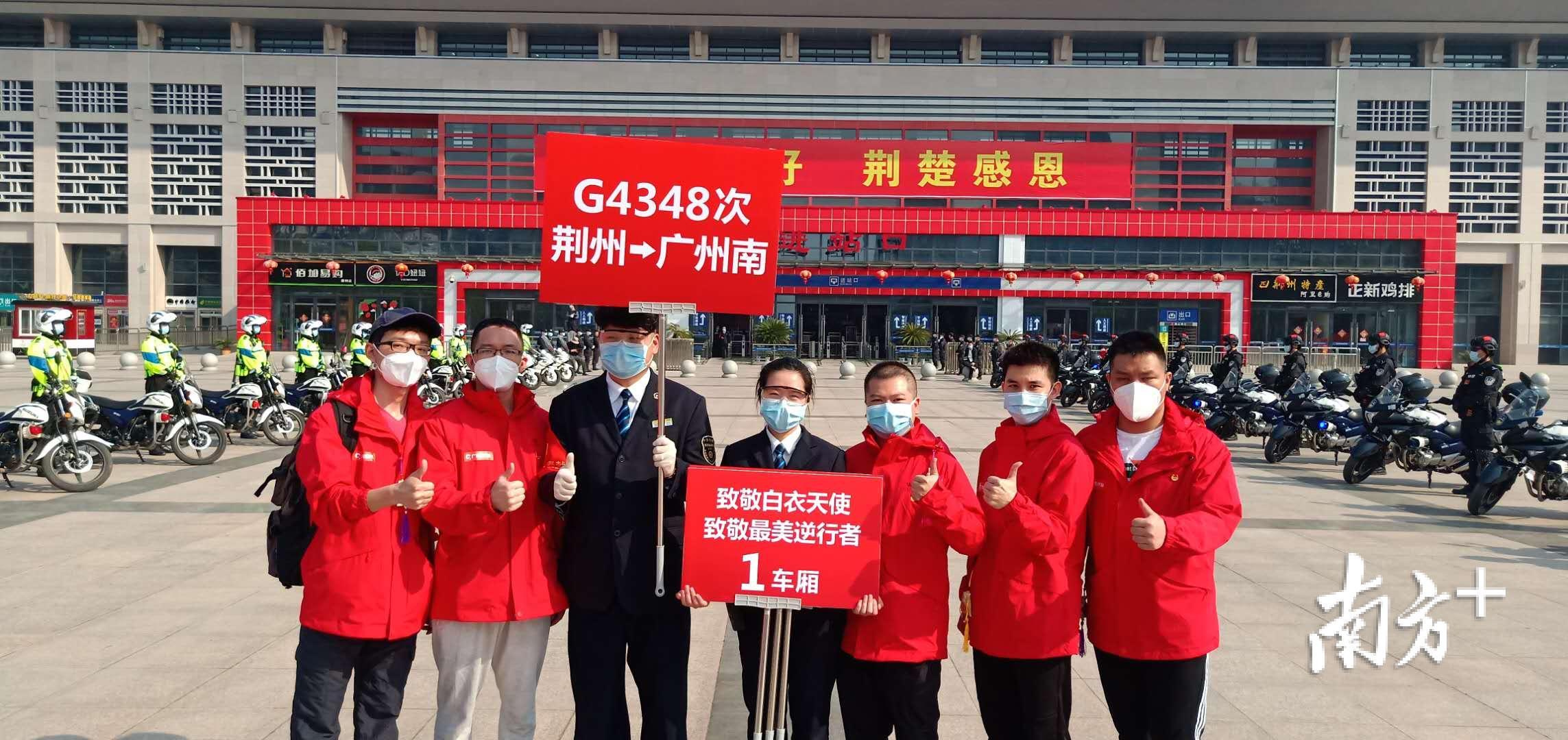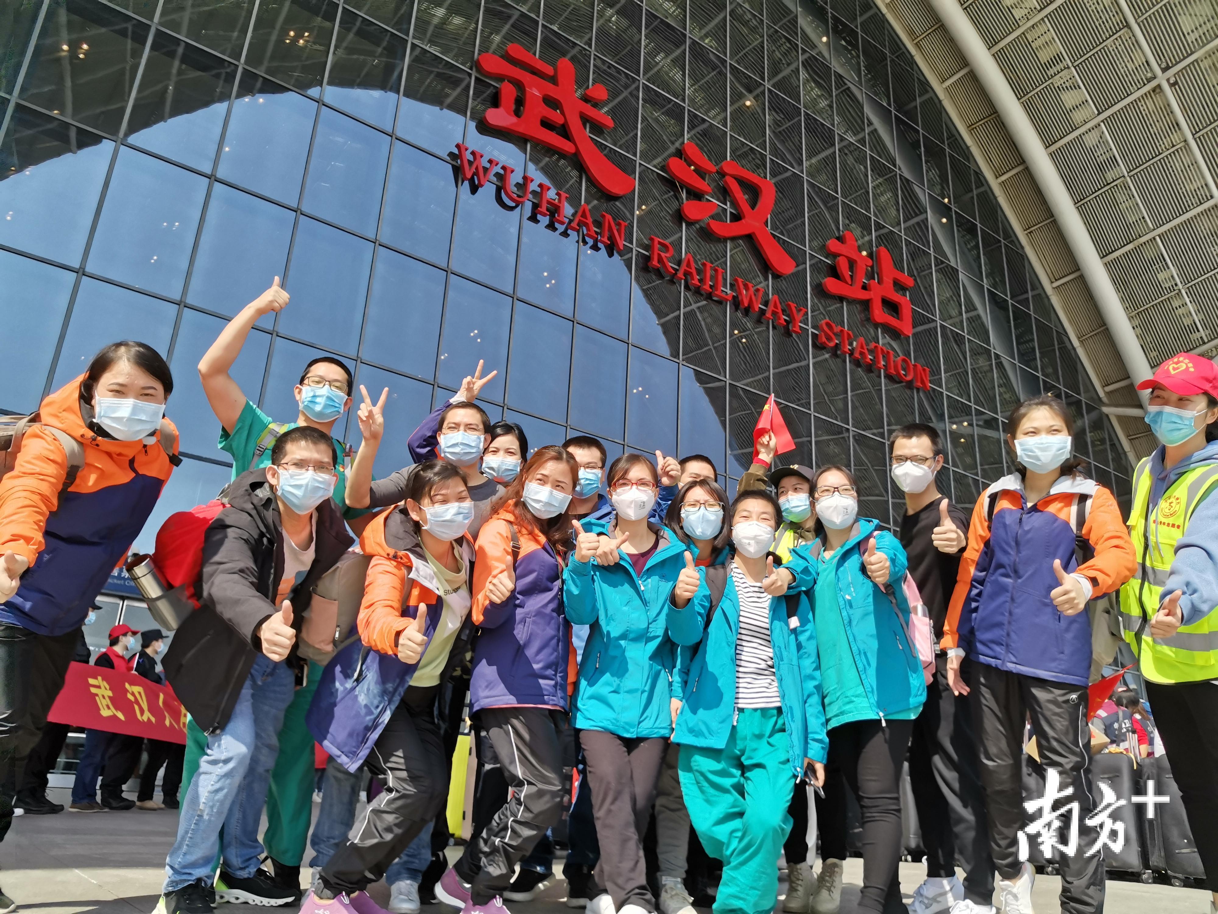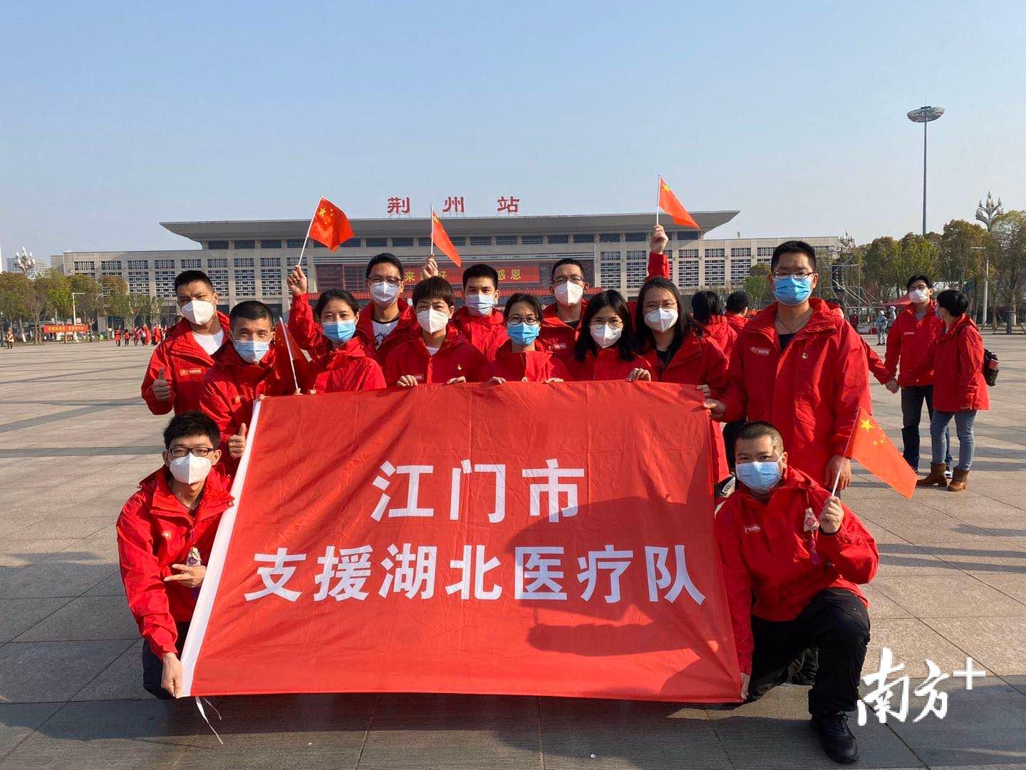 #江门市第二批支援湖北医疗队#队员在荆州站前合影留念。