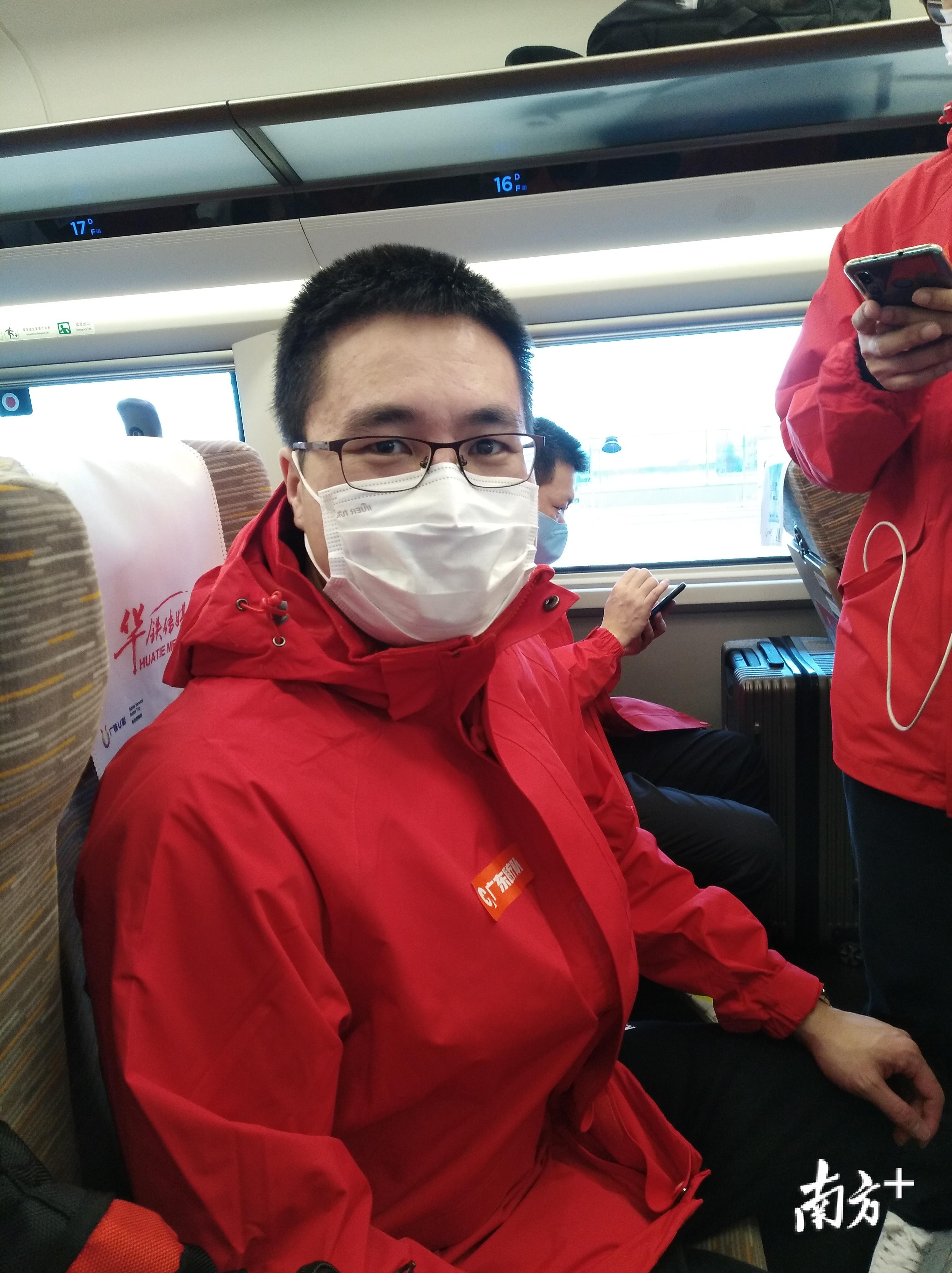 #江门市第二批支援湖北医疗队#医疗队今日返粤。江门市五邑中医院重症医学科护师甄坚亮告诉记者,他们正在前往荆州站。