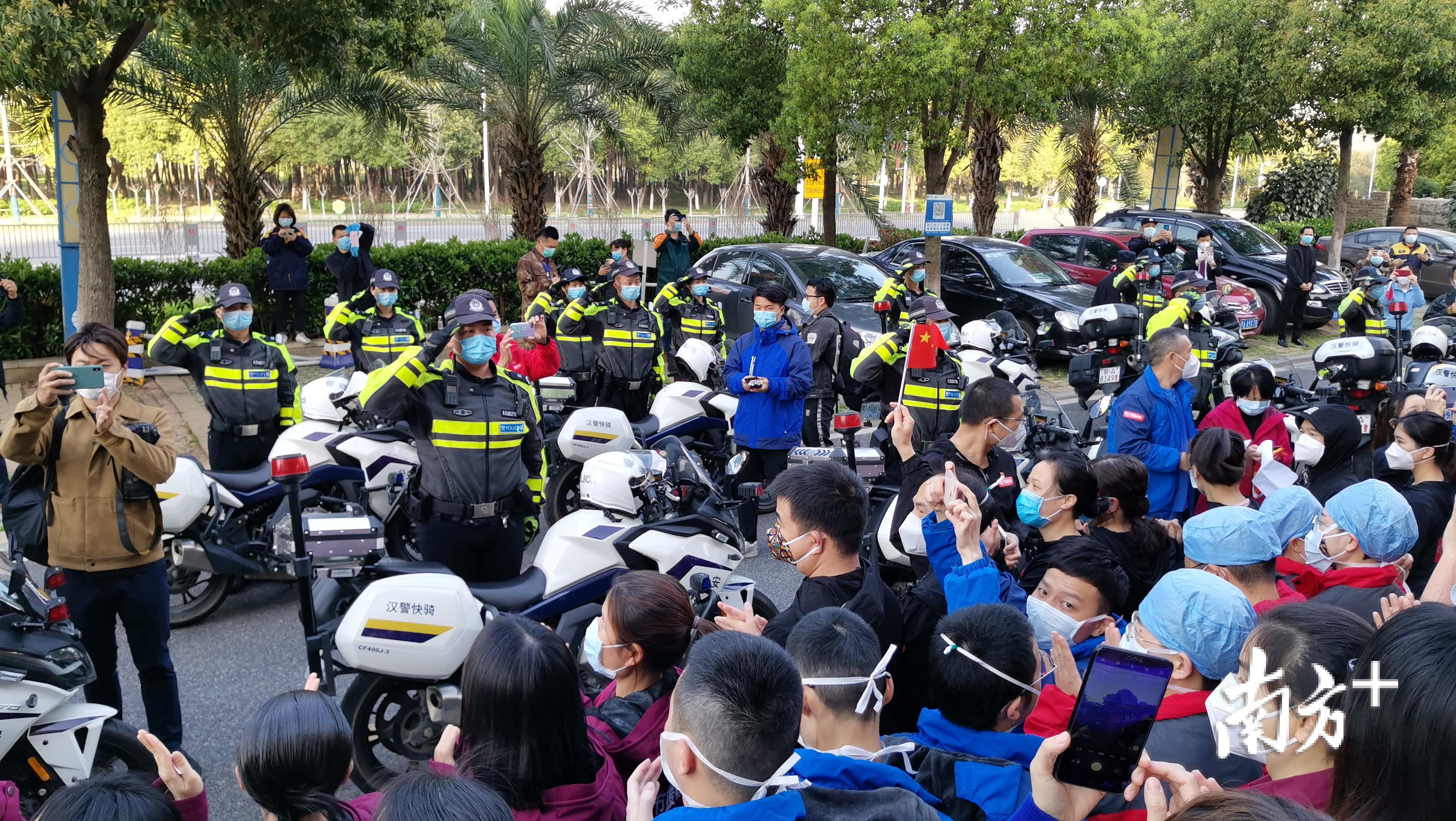 #江门市首批支援湖北医疗队#武汉警察向医疗队致敬。