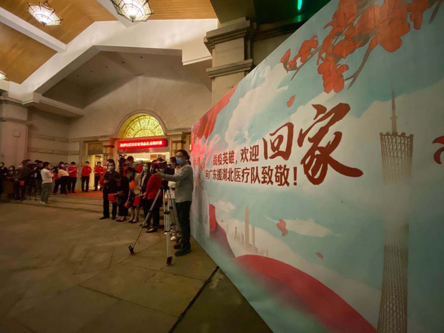 #江门首批支援湖北医疗队#在武汉站,驰援武汉的江门医护人员踏上归程。