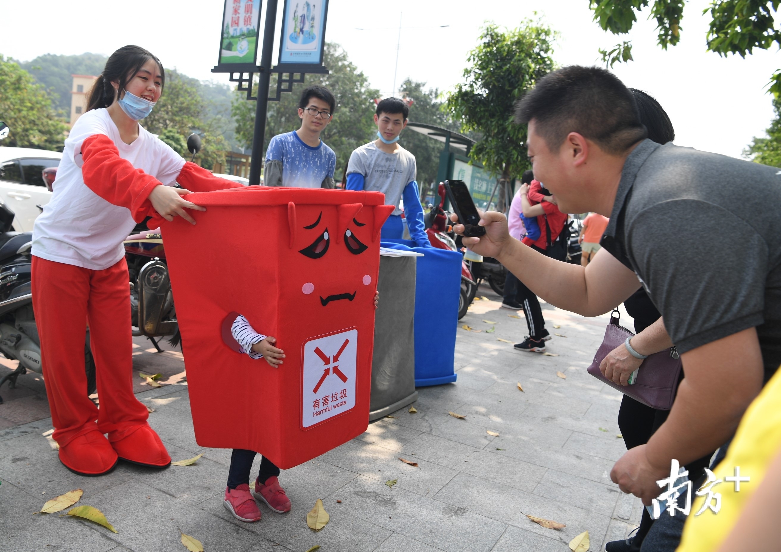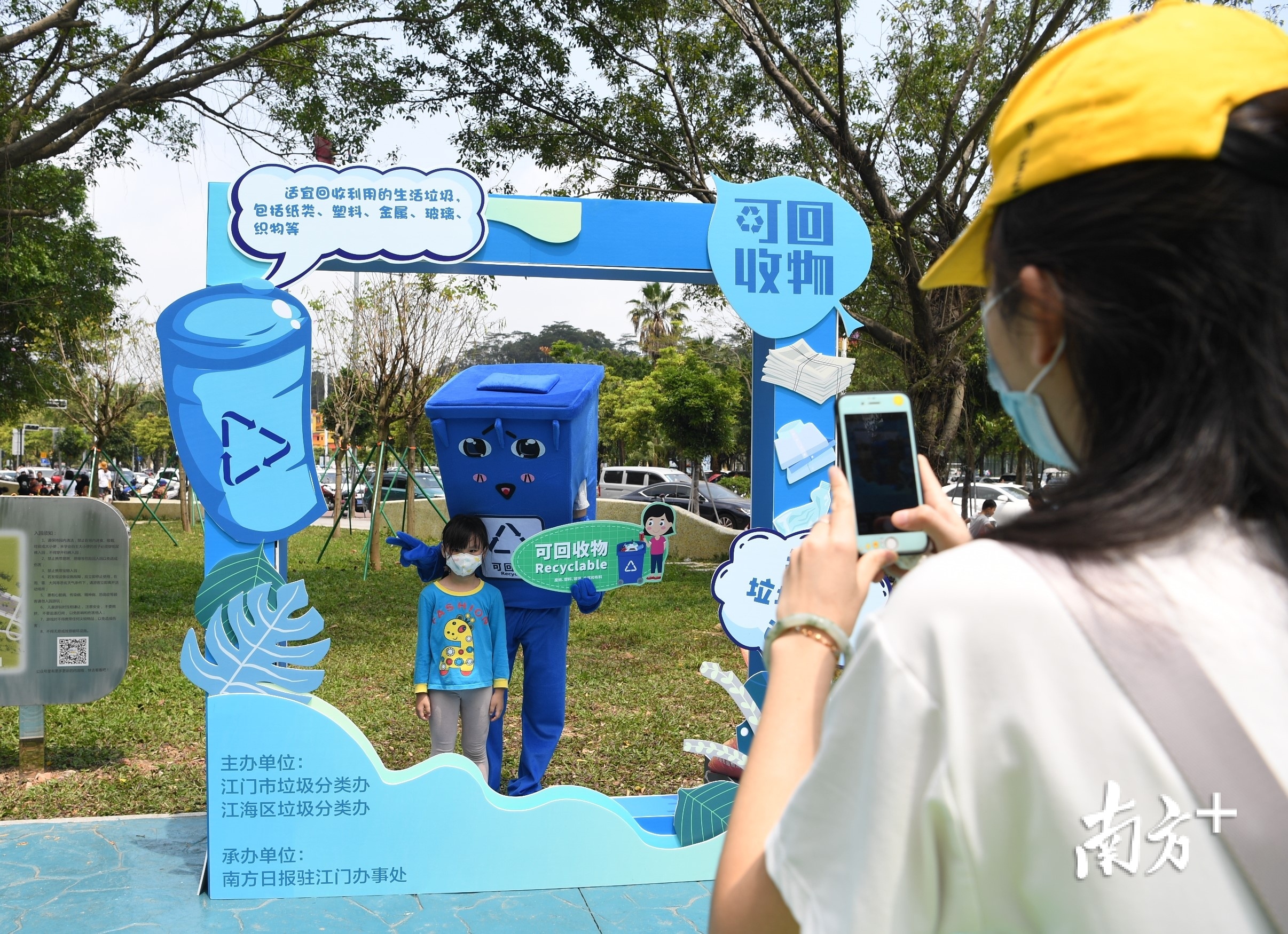 “绿动江门,我最拉风。”当天,江门垃圾分类公益宣传以创意打卡、卡通快闪等新潮的方式出现在儿童公园。市民打卡拍照,以朋友圈为载体“云”传播垃圾分类理念,营造出垃圾分类浓厚氛围。