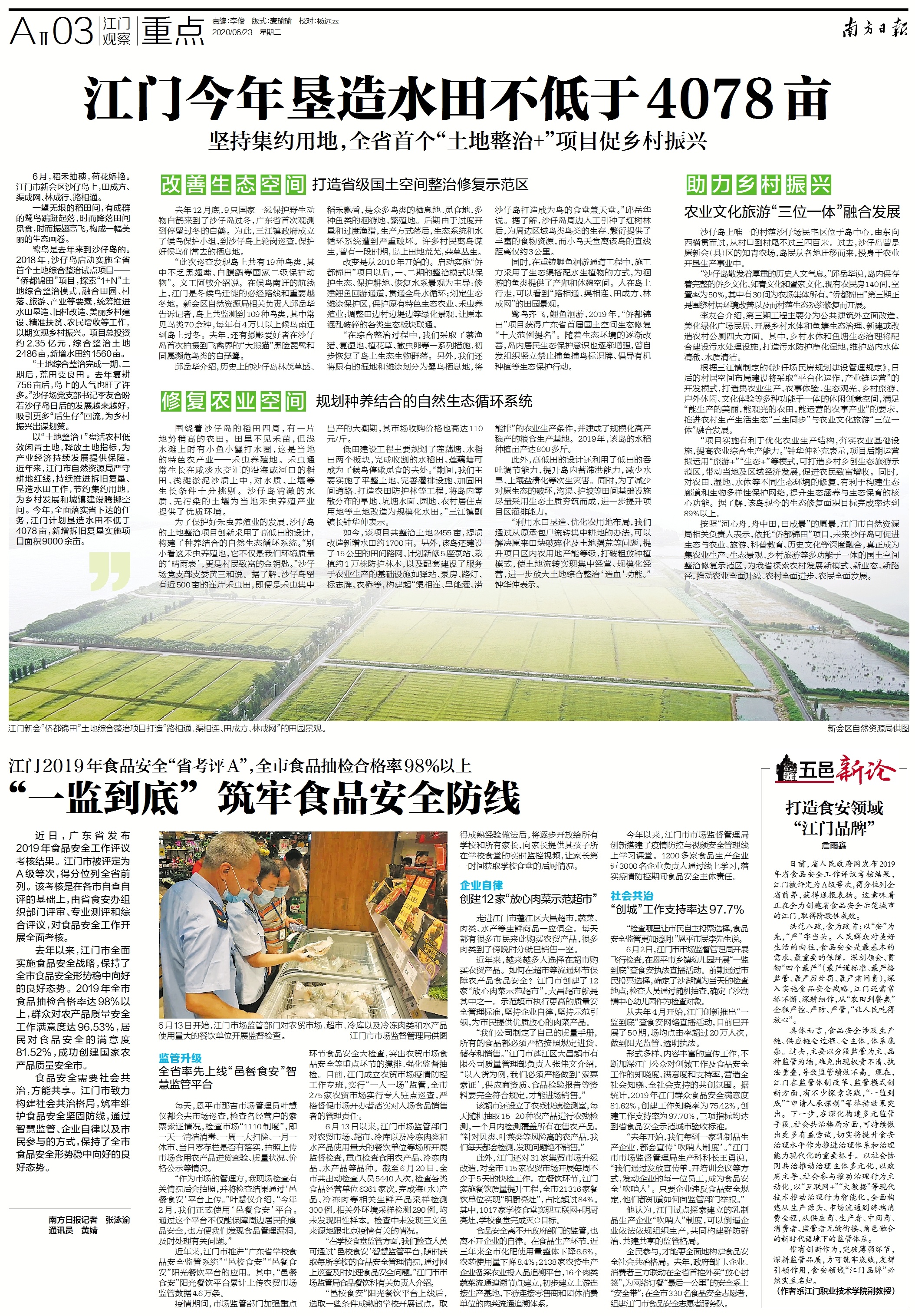 按照“河心舟,舟中田,田成景”的愿景,江门市自然资源局相关负责人表示,依托“侨都锦田”项目,未来沙仔岛可促进生态与农业、旅游、科普教育、历史文化等深度融合,真正成为集农业生产、生态景观、乡村旅游等多功能于一体的国土空间整治修复示范区,为我省探索农村发展新模式、新业态、新路径,推动农业全面升级、农村全面进步、农民全面发展。