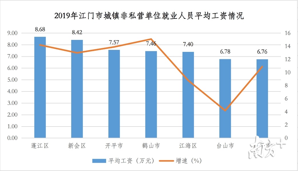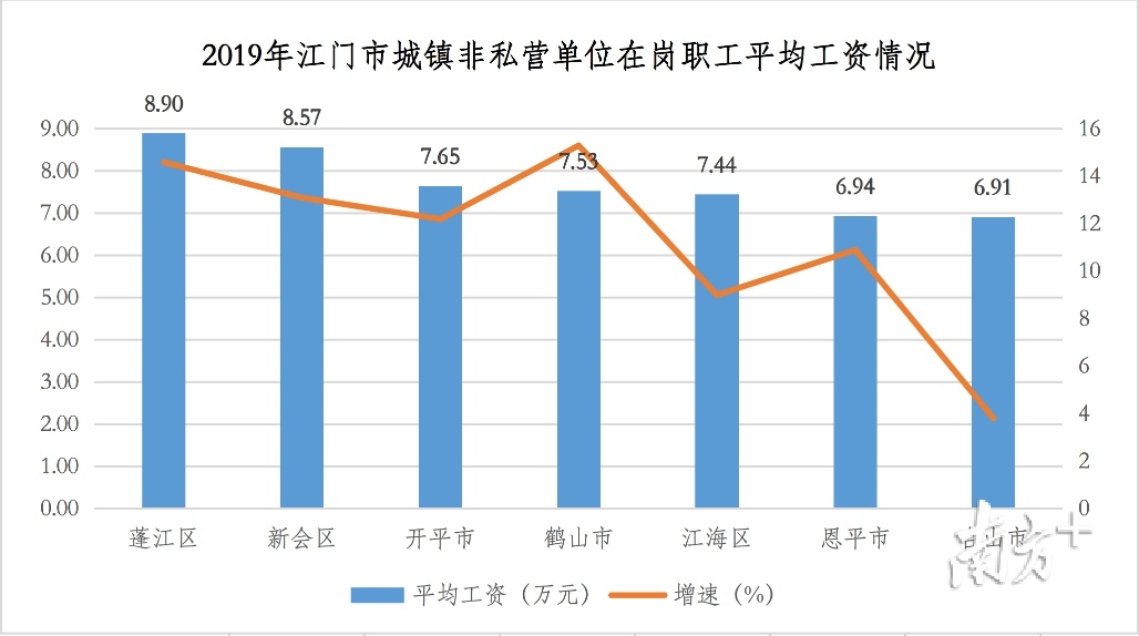 近日,江门市统计局发布的《2019年江门市城镇非私营单位就业人员平均工资公告》显示,去年江门市城镇非私营单位就业人员年平均工资79022元,在岗职工年平均工资80332元,同比均增长超12%,跑赢同期江门GDP增速。