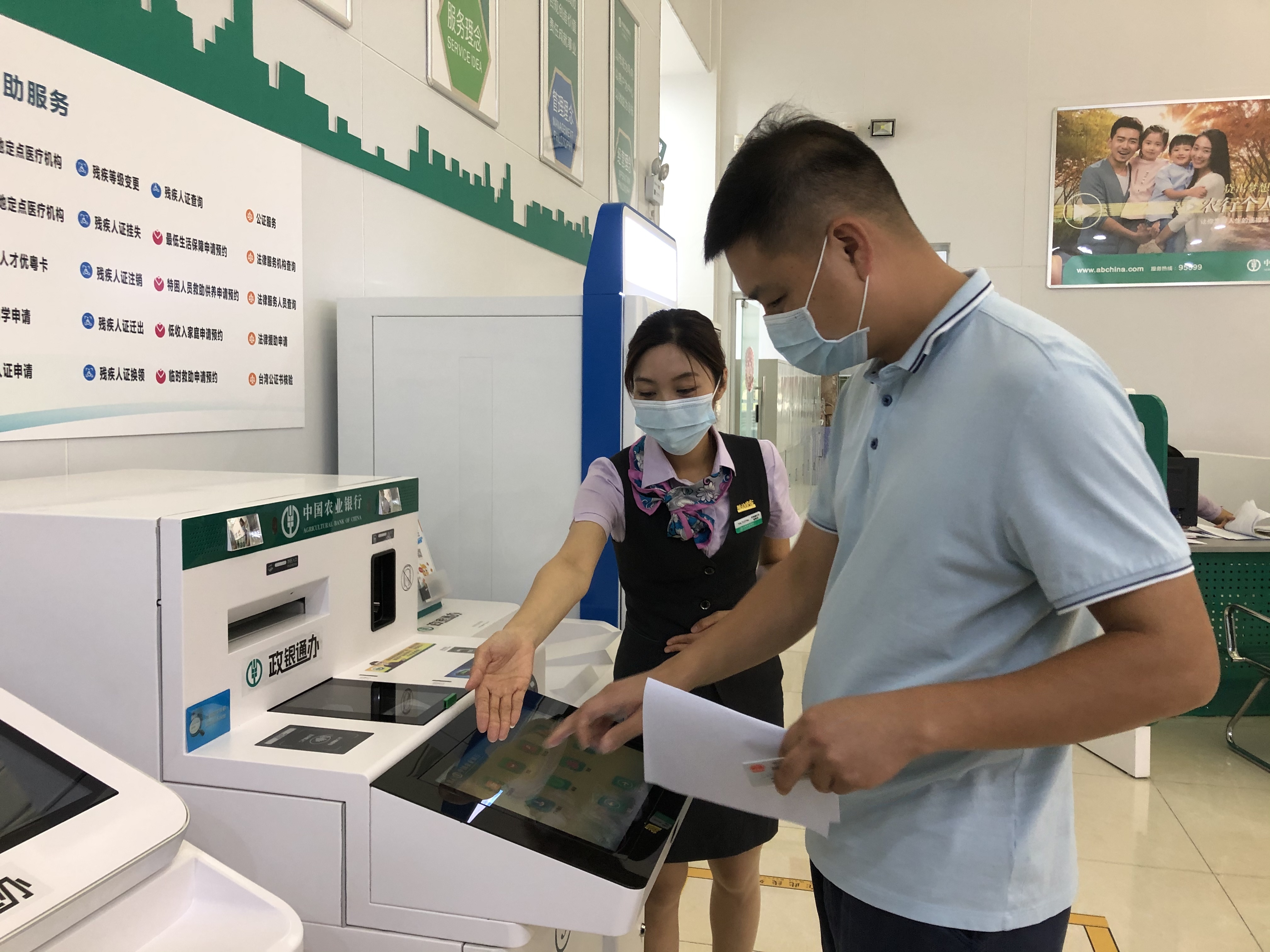 “刚刚查询社保缴费记录,顺便补了卡,前后不到10分钟。”7月17日,江门市民吴晓敏来到中国农业银行江门分行(下称“江门农行”)胜利支行营业部,体验了该行不久前开通的“政银通办”服务。
