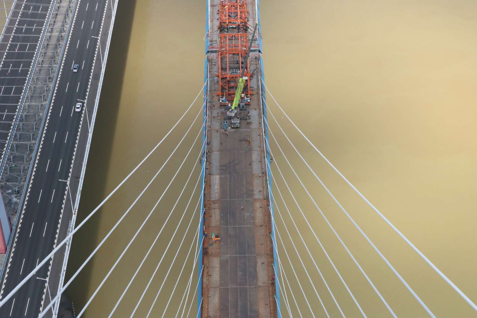 7月22日,由中铁十一局承建的粤港澳大湾区基础设施“硬联通”重点工程——广州南沙港铁路跨西江斜拉桥完成最后一组斜拉索挂设,为下一步大桥合龙奠定坚实基础。挂设好的缆索,犹如一根根白色琴弦,飞扬在滔滔江面,奏出华美乐章。