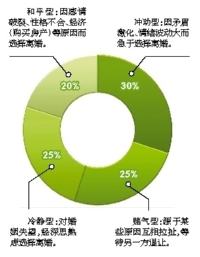 当今社会生活中的很多离婚往往发生在婚姻双方压力太大、意气用事或其他不冷静的情况下,而草率的离婚会给婚姻双方自身、子女成长乃至社会和谐带来伤害。据统计,前来婚姻登记的协议离婚一般分以下几个类型:冲动型、赌气型、冷静型、和平型,其中冲动型和赌气型占55%。