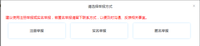 选择【举报方式】,点击【注册举报】、【实名举报】或【匿名举报】其中一种方式。