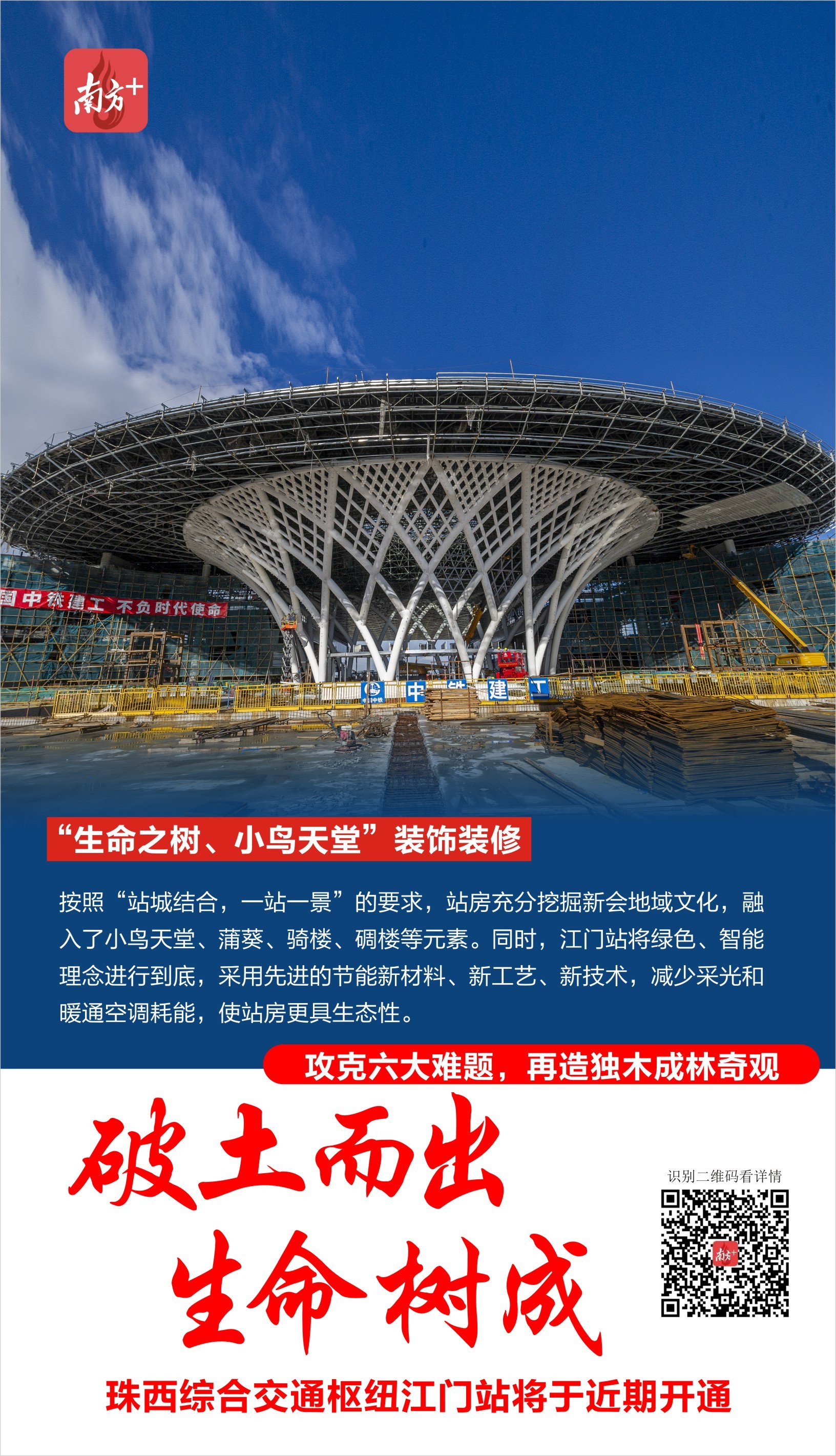 回顾两年多的建设历程,江门站攻克了六大难题,成功在五邑大地再造了一个独木成林的奇观。