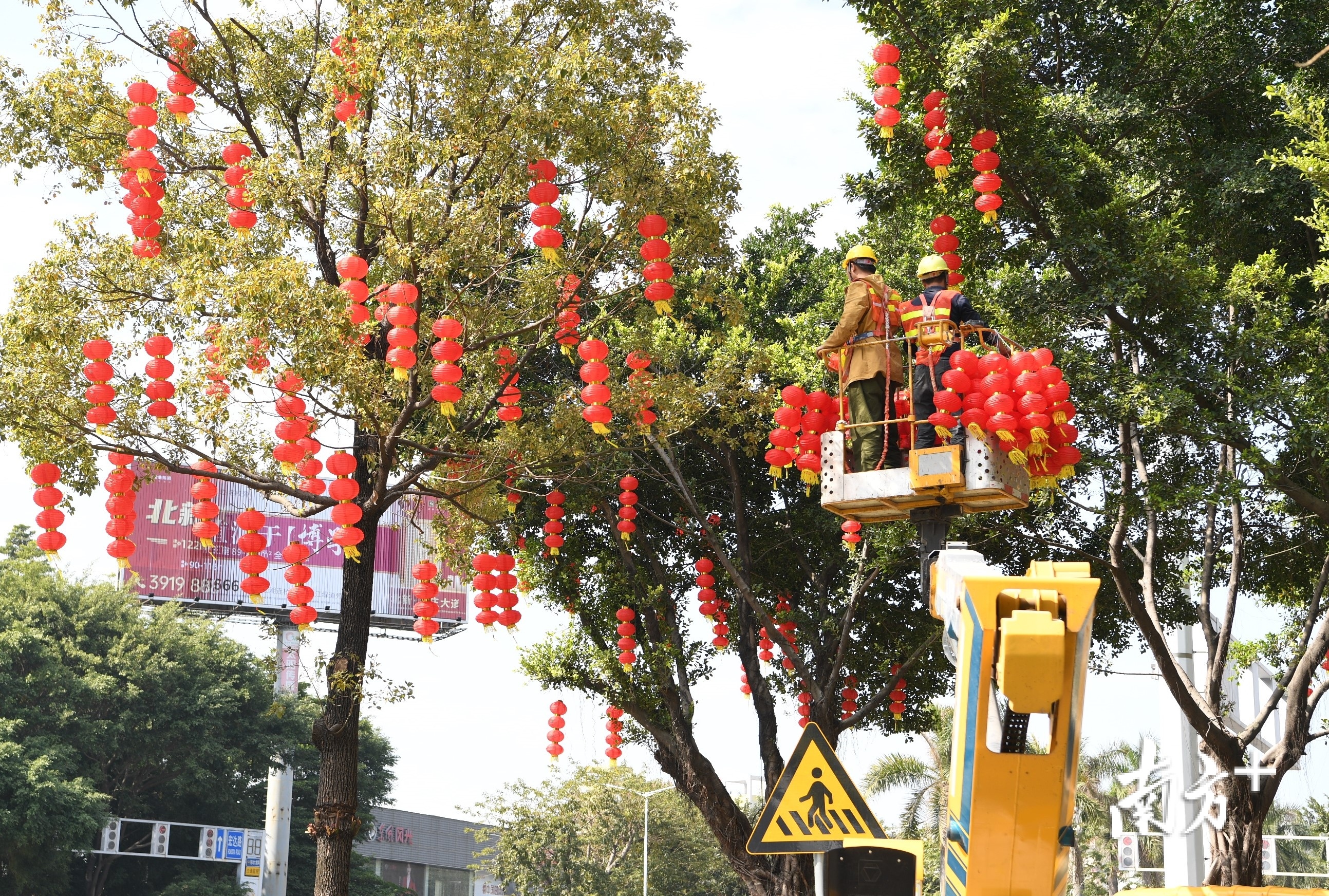 春节临近,年味渐浓。市区多条主干道上,城管工作人员正在加紧悬挂红灯笼。挂在树上,挂在灯柱上,一串串,一对对,都是春的美好祝愿。