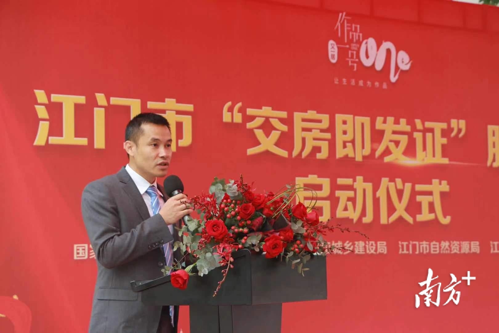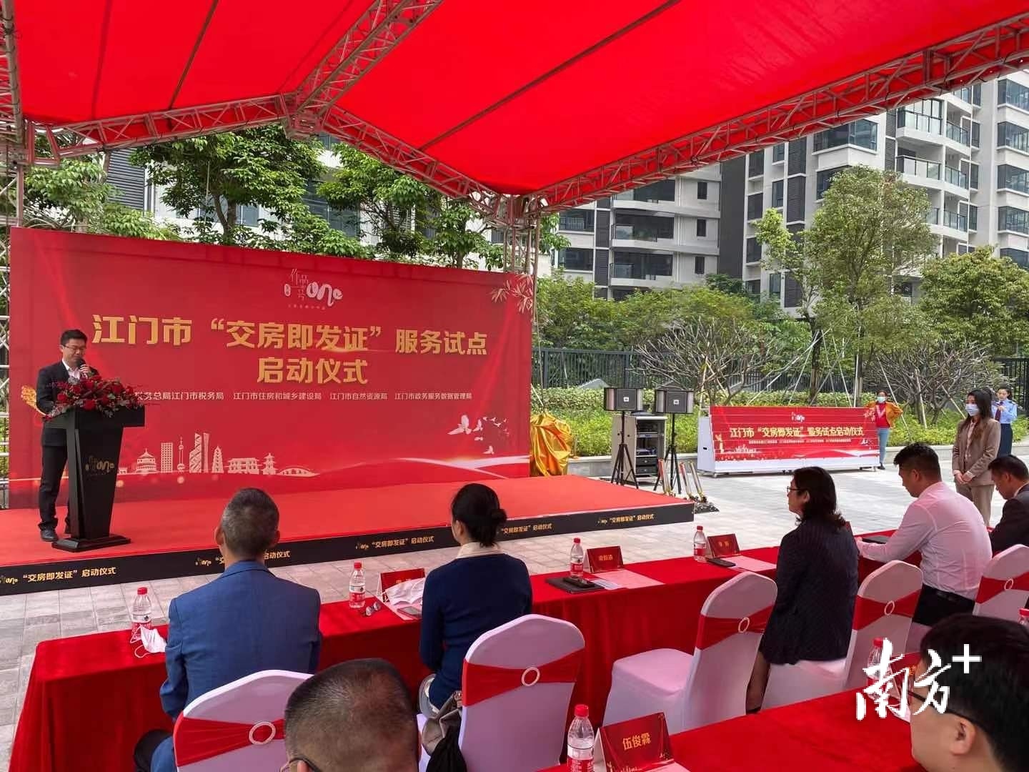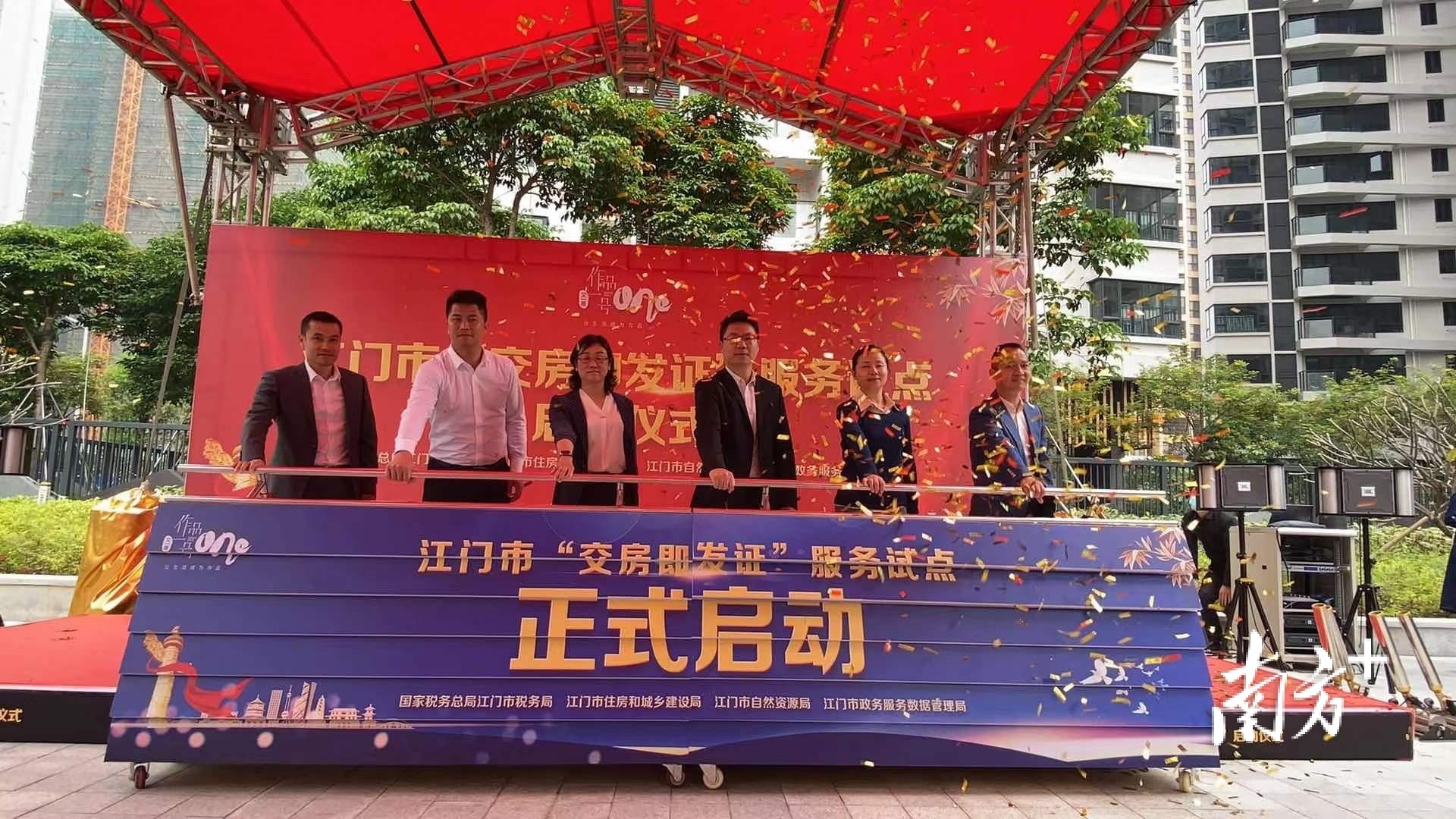 3月25日上午,江门市税务局、住房和城乡建设局、自然资源局、政务服务数据管理局共同举办“交房即发证”服务试点工作启动仪式,标志着江门市“交房即发证”创新改革工作全面启动。