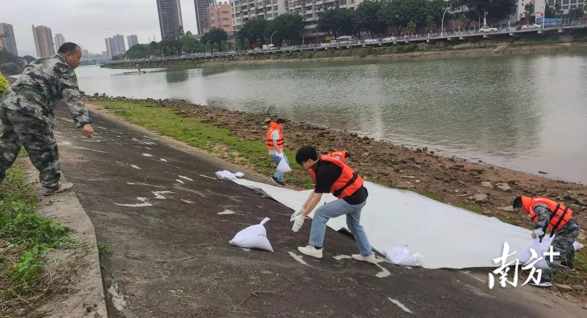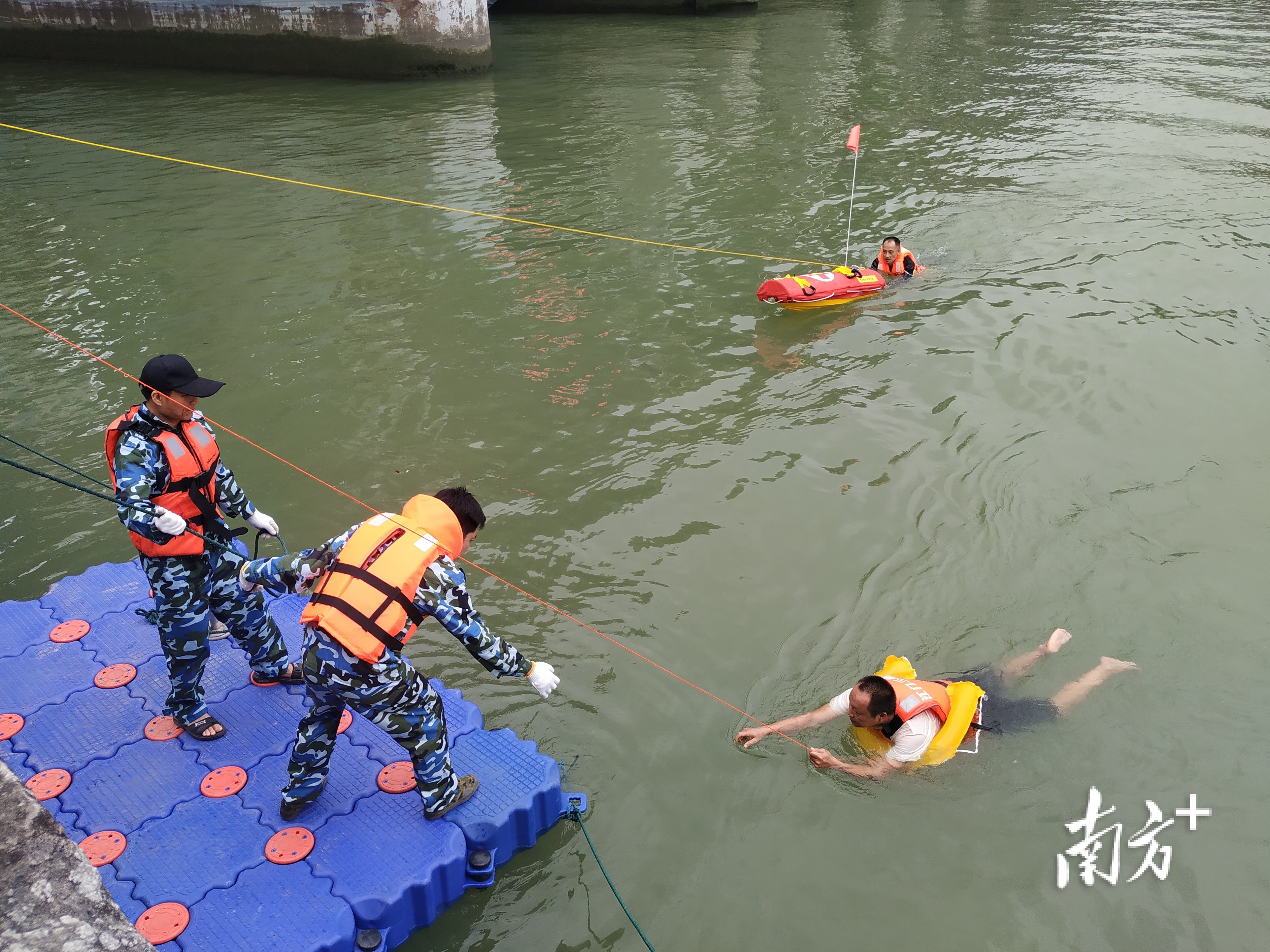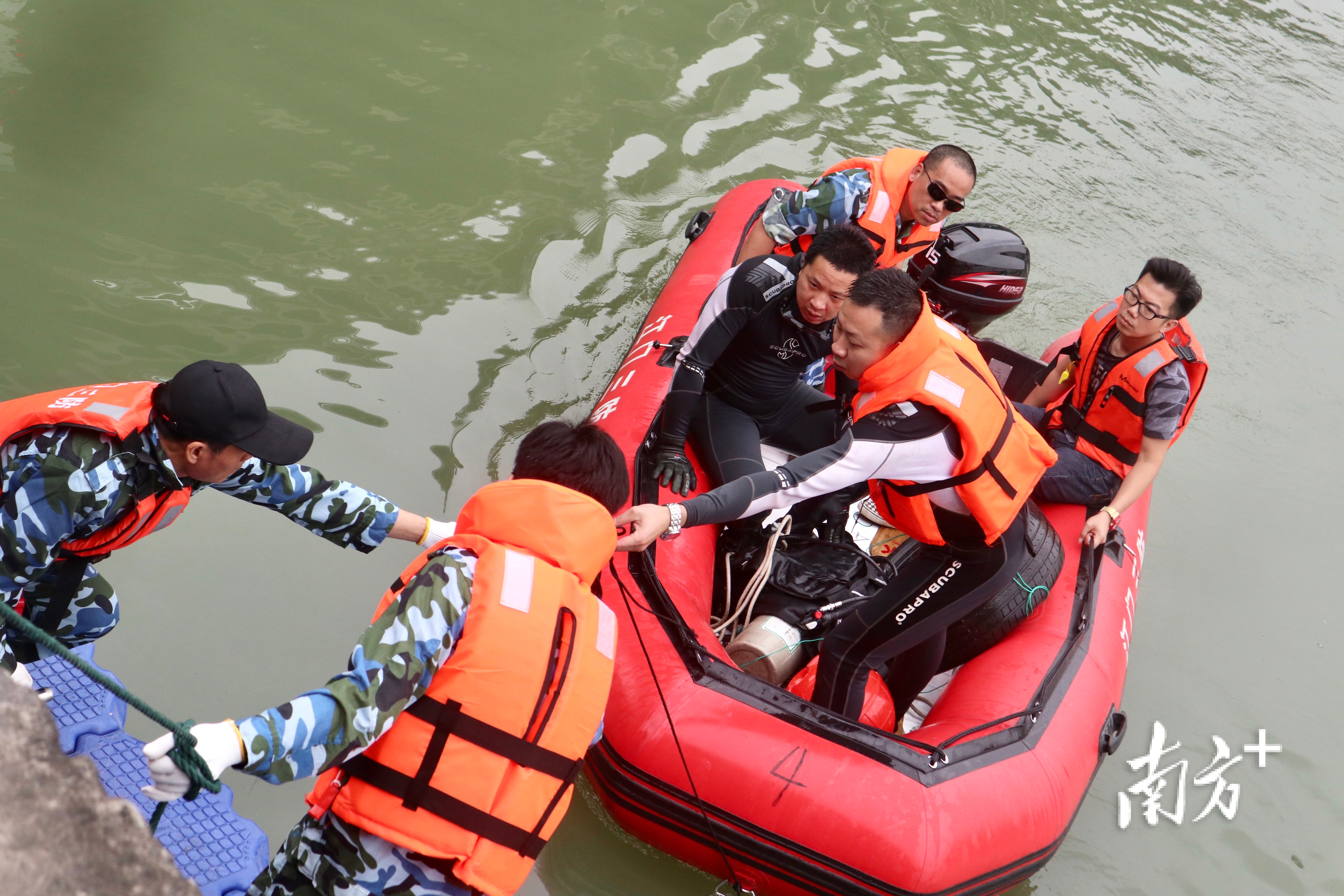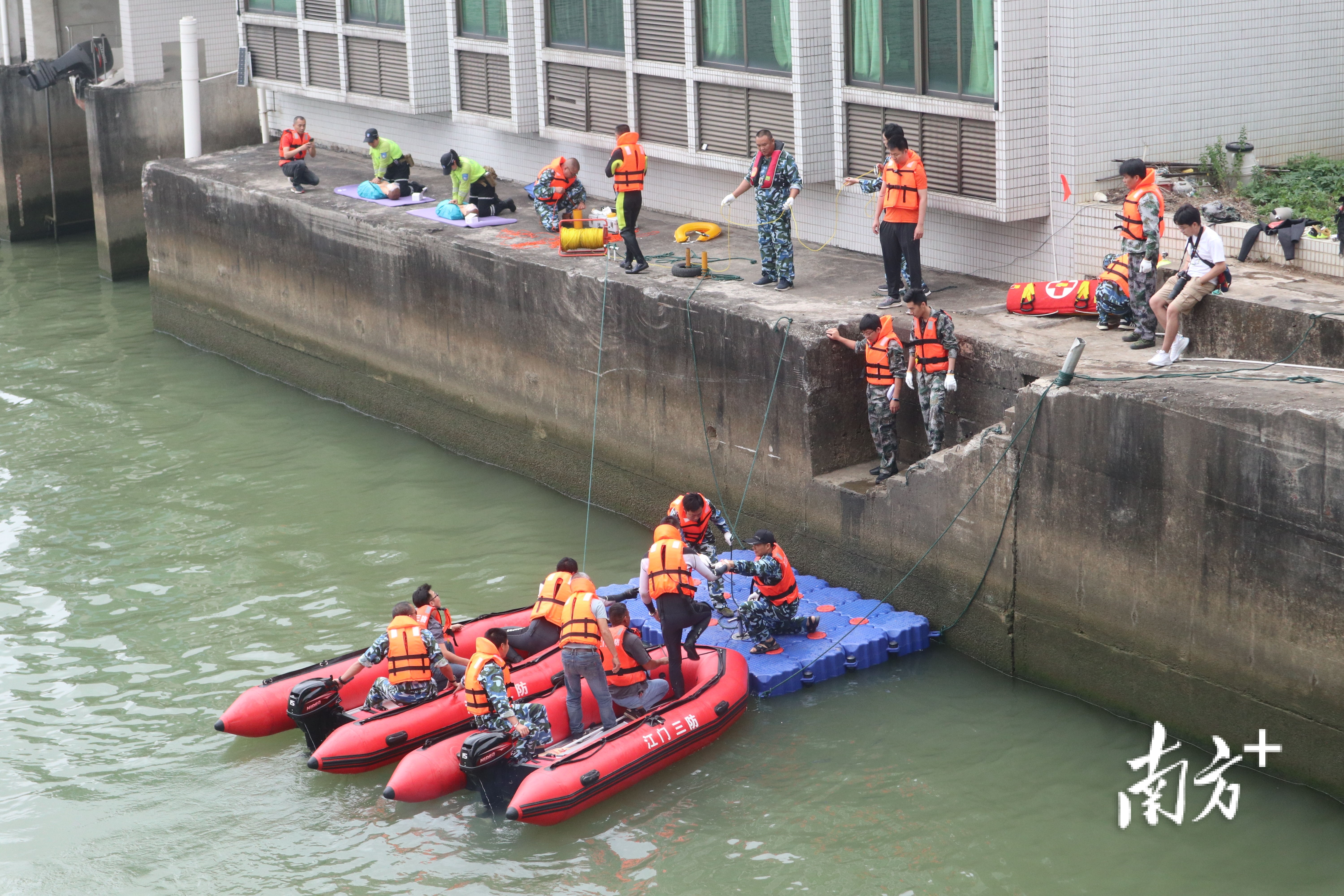 “由于强降水及西、北江上游来水共同影响,有群众被洪水围困,等待救援转移;在解救过程中,救灾水域水流湍急,有群众落水,舟船难以接近落水点;受西江洪水和北街水闸分洪影响,水闸巡查人员发现下游堤段发现1处水下管涌;北街水闸在闸门运行过程中发现有障碍物需进行水下清障……” 当天上午,收到“险情”后,“抢险”队员整装待发。