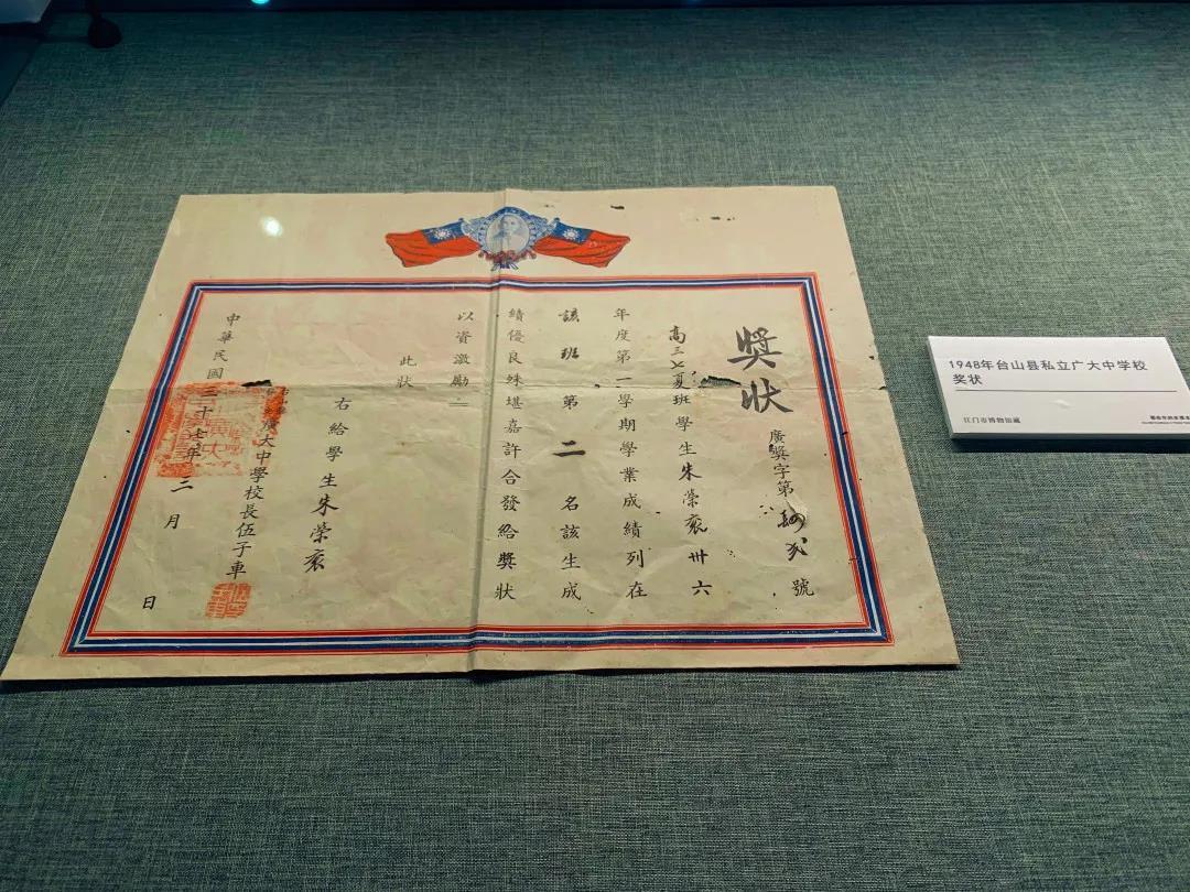 1948年台山县私立广大中学校奖状