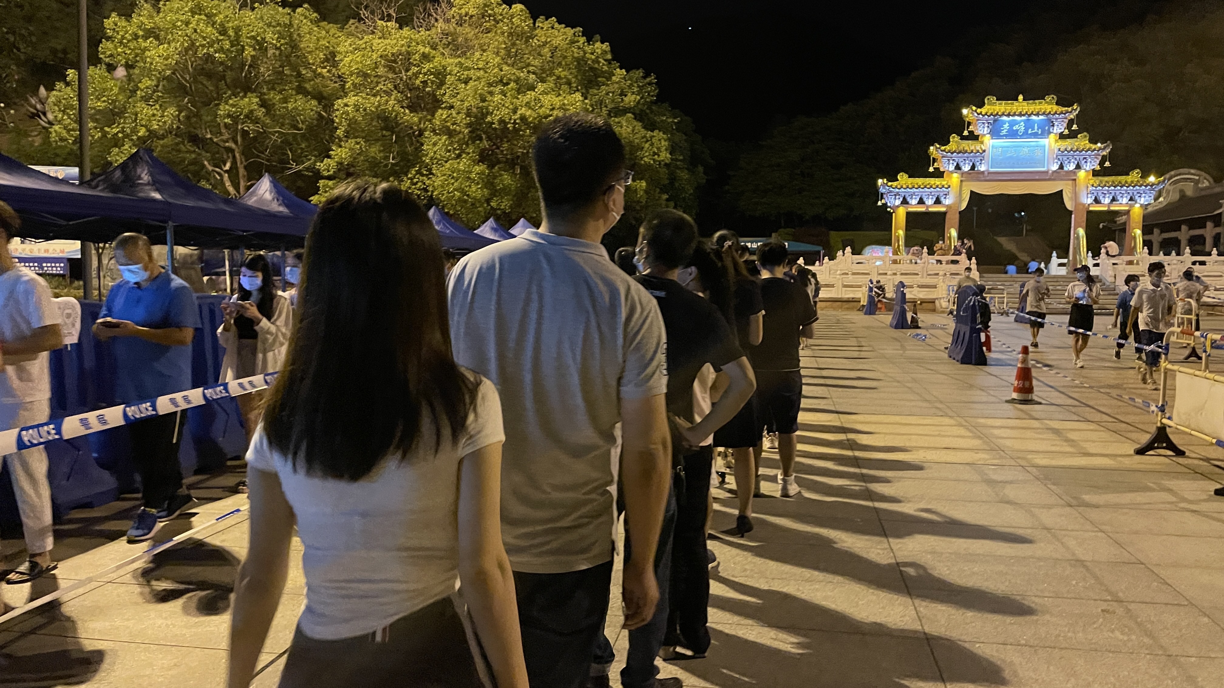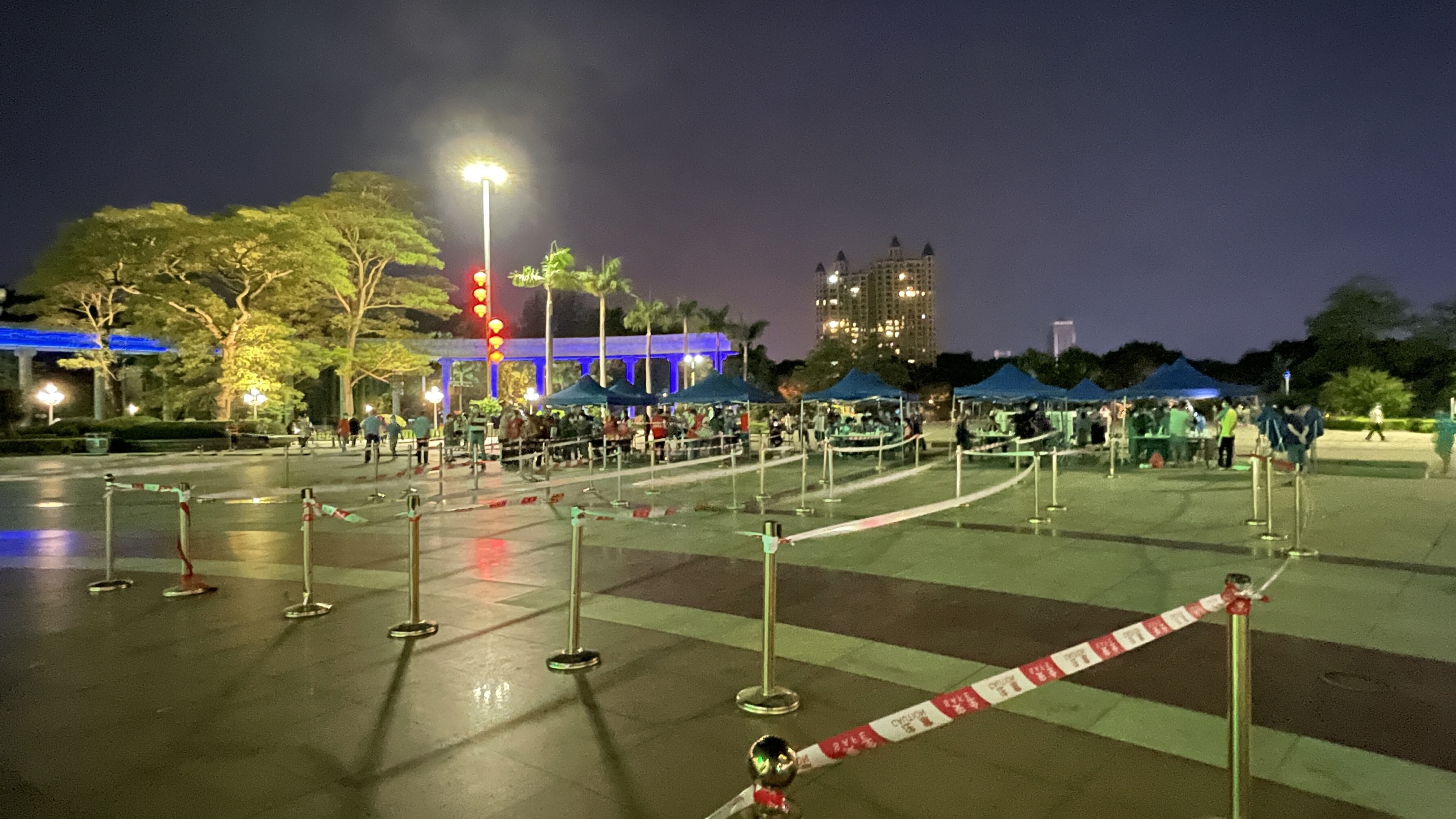 这里是全市最快搭建起来的检测点之一。靠着朋友圈一传十、十传百,不少市民来到这里排队等待核酸检测。