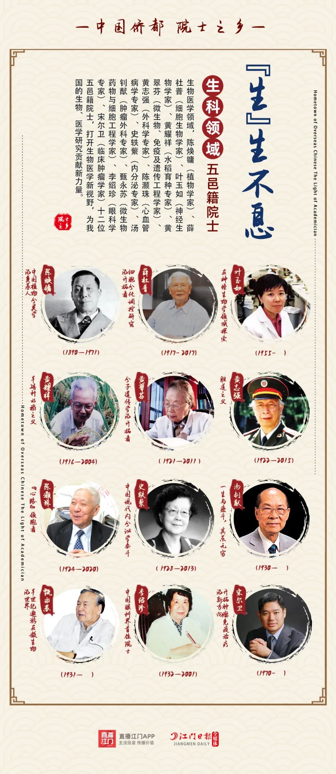 生物医学领域,江门同样人才辈出。从事生物、医学研究的有12位五邑籍院士,打开生物医学新视野,为我国的生物、医学研究贡献新力量。