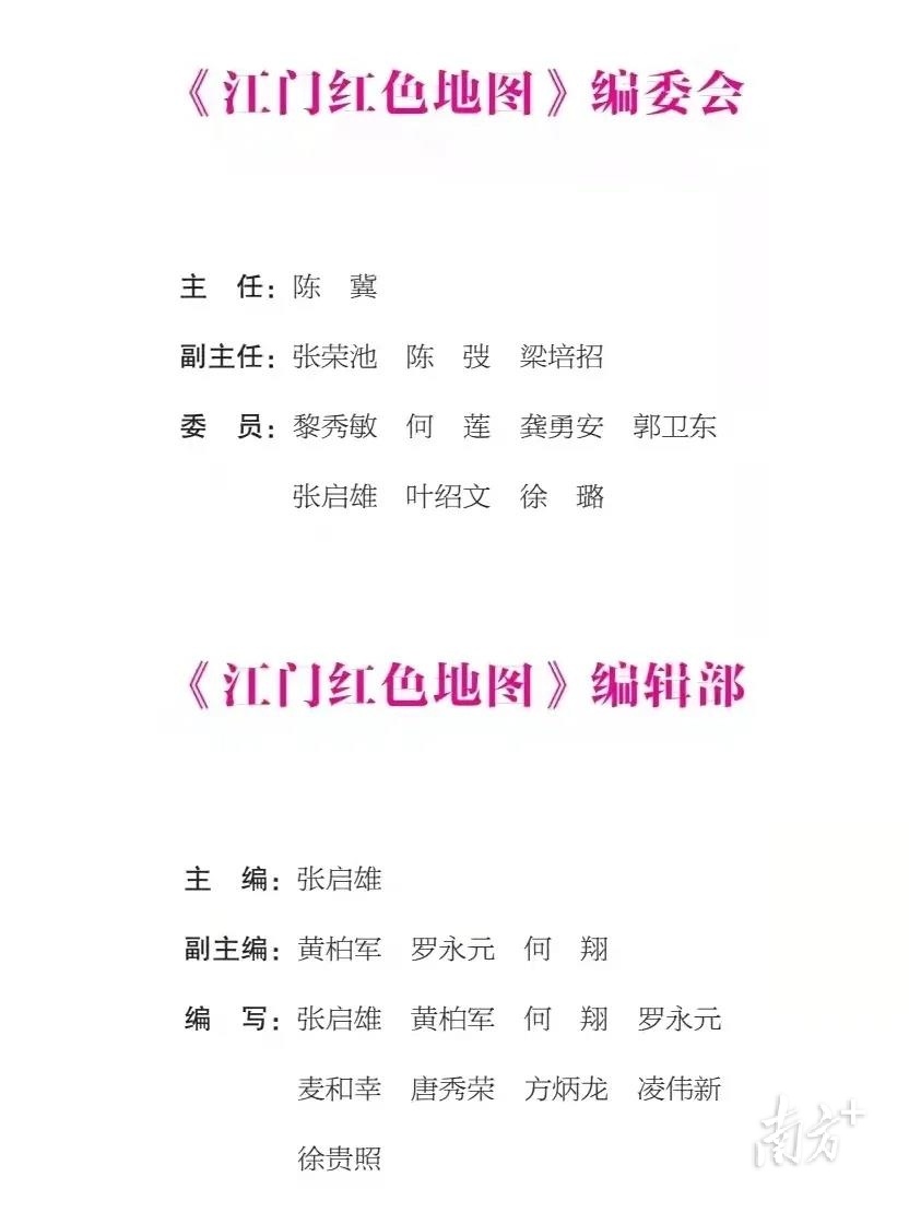 江门市作协组织九位作家和文史专家撰写和搜集资料,包括张启雄、黄柏军、何翔、罗永元、麦和幸、唐秀荣、方炳龙、凌伟新、徐贵照。